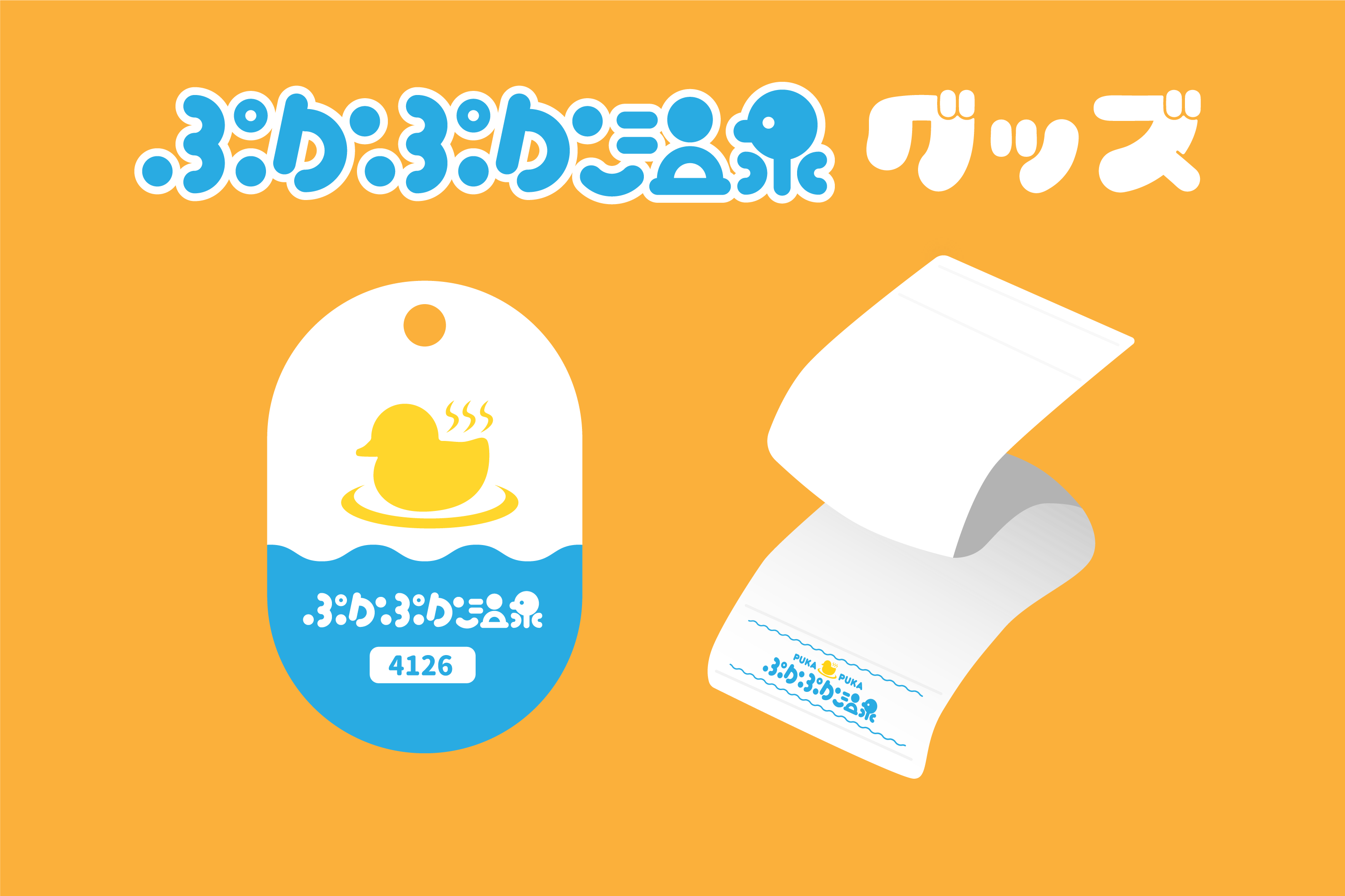 今回はぷかぷか温泉のロッカーキープレート風アクリルキーホルダーと、温泉タオルを用意しました!