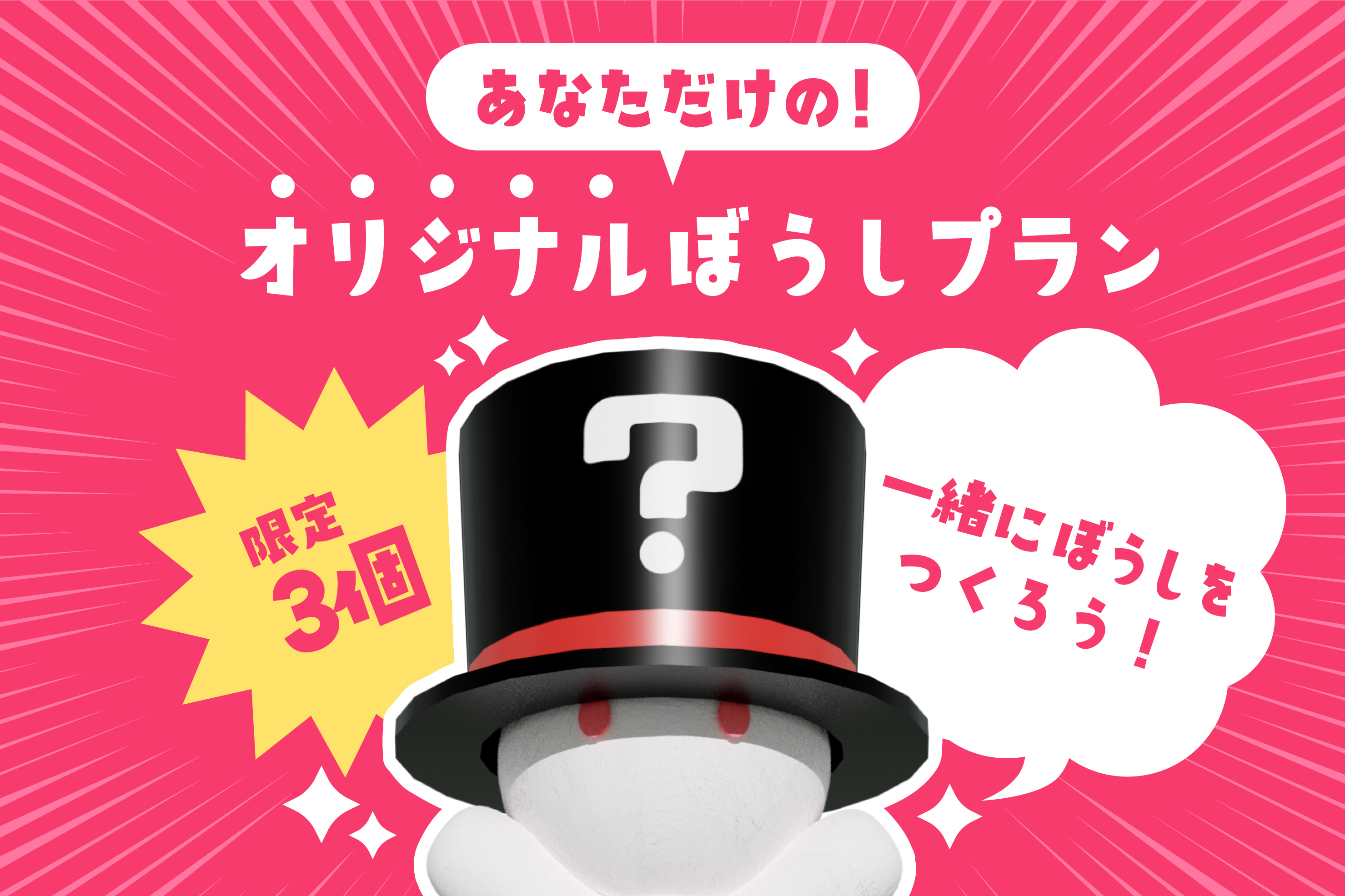 おかげさまで「あなただけの!オリジナルぼうしプラン」が完売しました、ありがとうございます!
