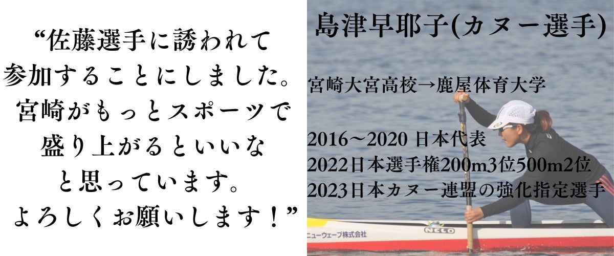 そしてこのイベントには、“宮崎をスポーツで盛り上げたい”という共通の想いを持った様々な競技のアスリートが集結します!(紹介は後ほど)