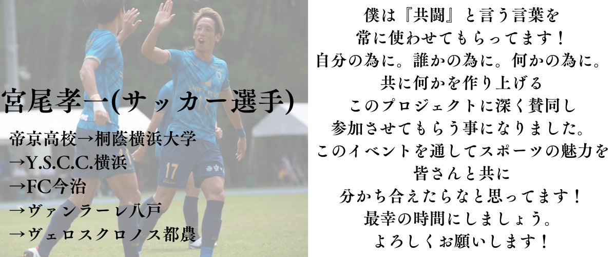 そんな仲間と共にこのイベントを盛り上げていきたいと思っていますし、普段なかなか交流することのできない現役アスリートとスポーツを体験することで子供たちにとってより特別な時間として記憶の中に残ってくれればなと思っています。
