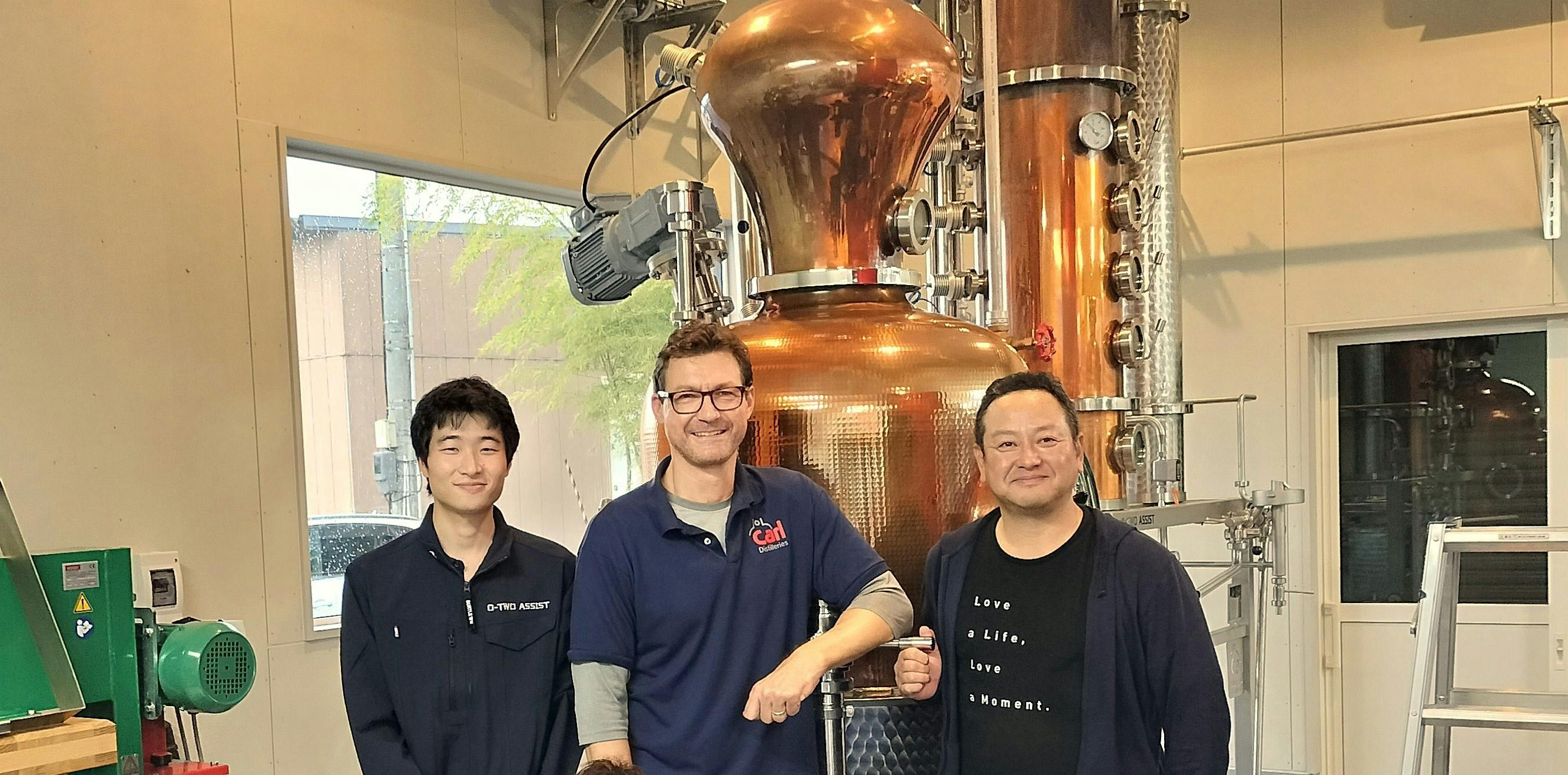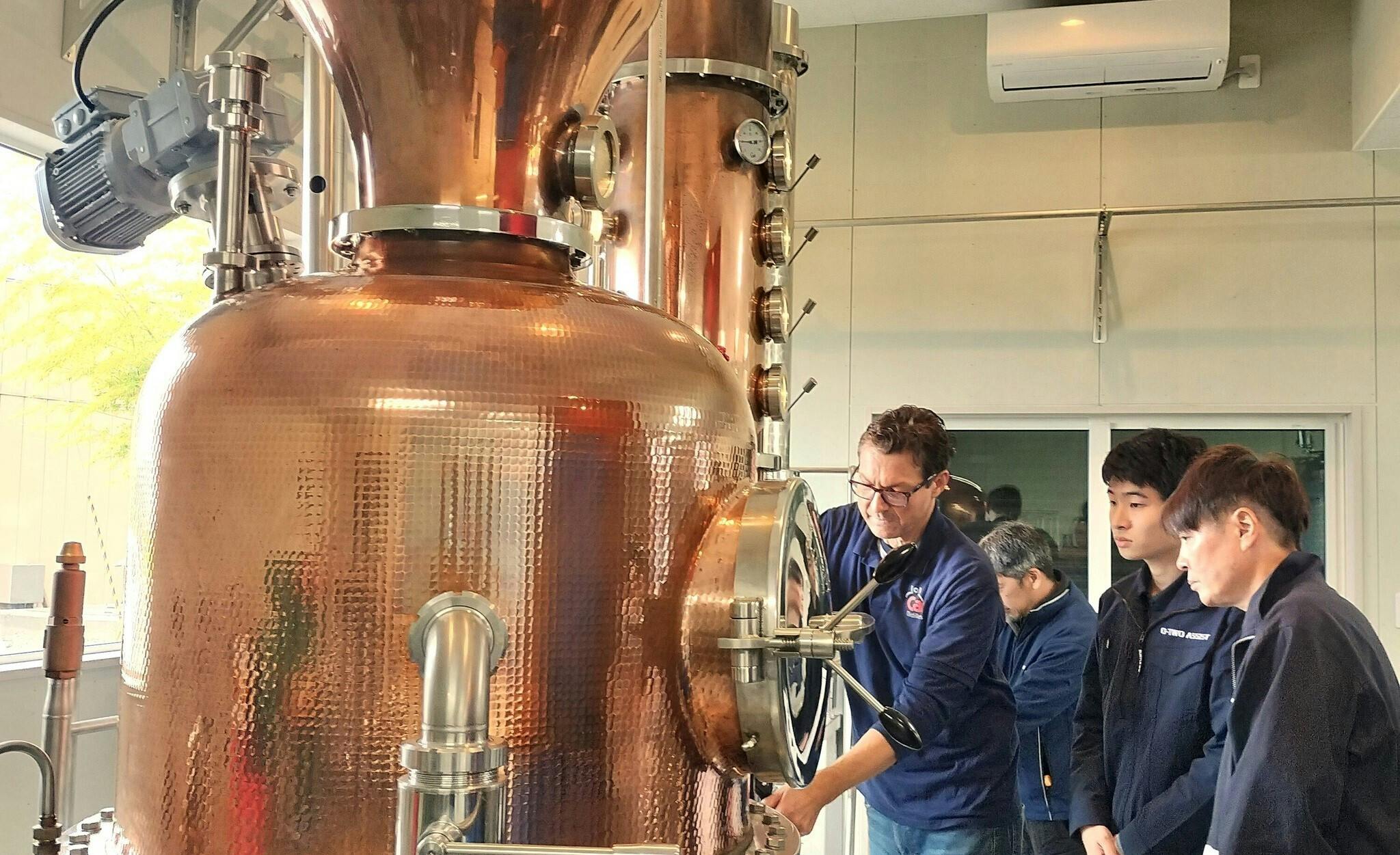 最初のブランデー製造は右も左もわからない状態だったので、ブランデー蒸留機メーカーのドイツ人技師ニコラスに訪日していただき、製造指導を数日して頂きました。