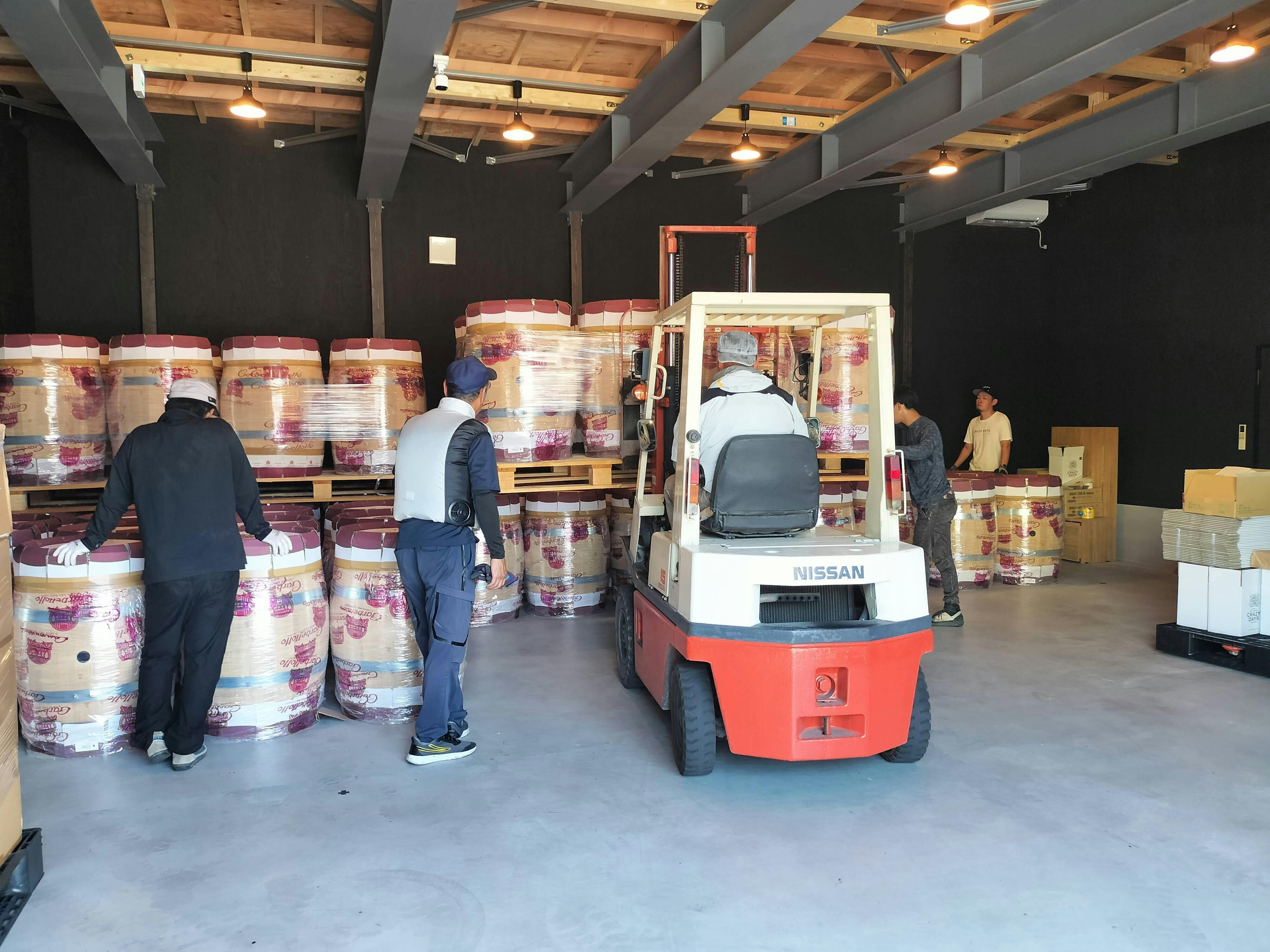 さて過去の皆様の温かいご支援のおかげで、ようやく第二工場も完成し昨日、アップルブランデーを熟成させるためのフレンチオーク樽(225ℓ)が100樽納品されました!