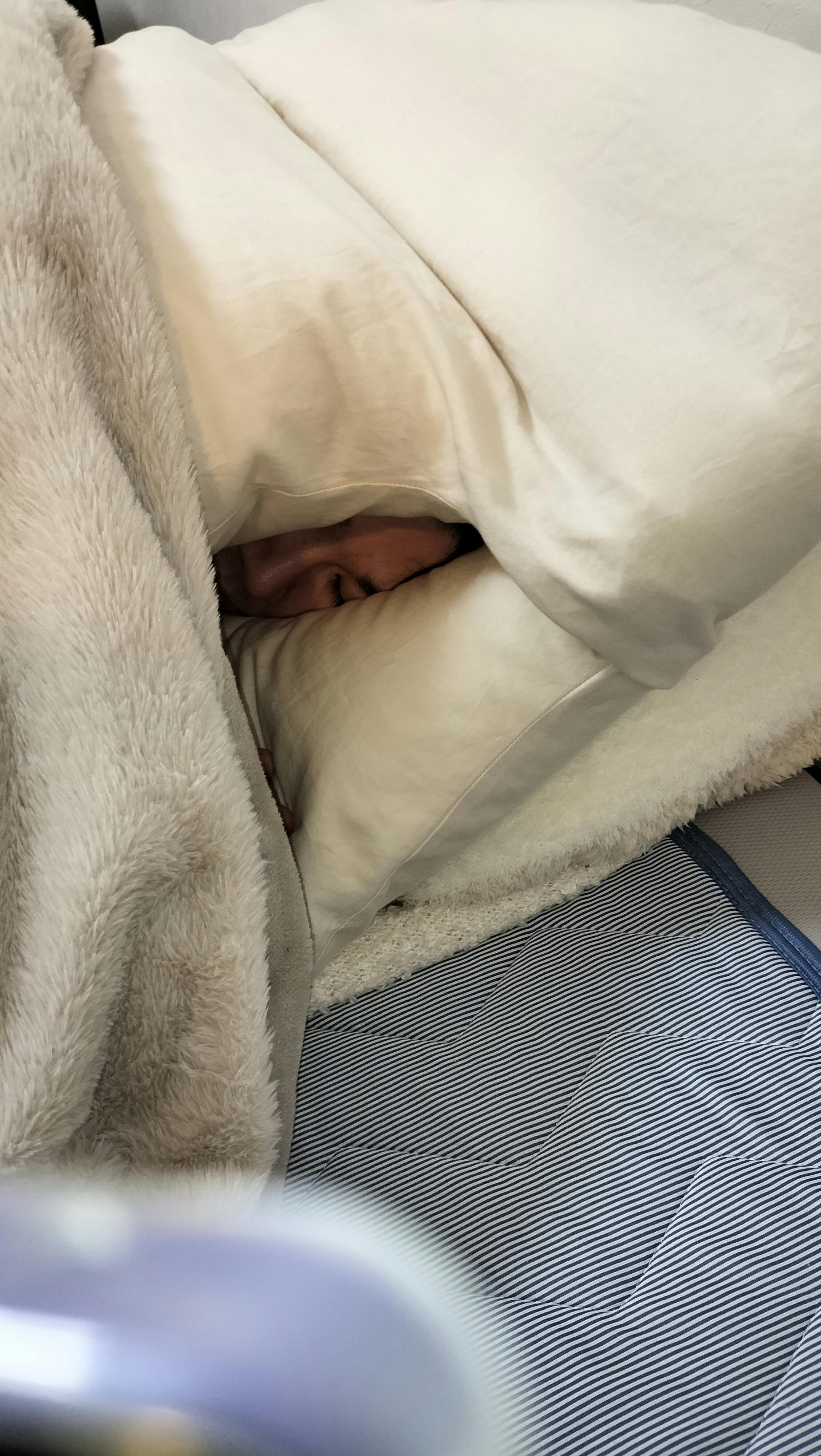 2024/01/01 23:56冷え性だと特に足の冷えが酷くて眠りにくかったりしますよね。原因は様々だと思いますが、血の巡りが悪くなり冷えを感じているようですね。靴下を履いて対策している方もおられるのではないでしょうか。 そんな方には顔用布団で新たな冷え性対策をお勧めします。顔、肩、首をすべてカバー出来るので、熱を逃がさず布団に包まれる安心感とともに眠りを誘います。靴下はなるべく脱いで頂くことをお勧めします。布団内にこもった熱を逃がす為に、足は重要な役割を果たします。寝返りを打つことによって、布団内の温度を調整しながら快眠を目指したいですね。 もっと見る