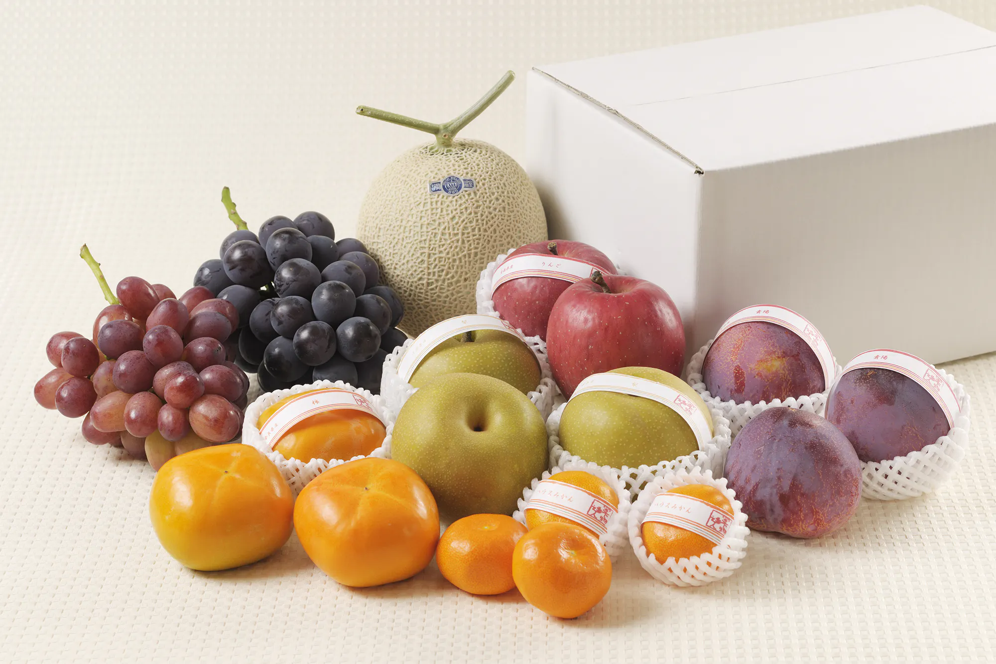 8月 フルーツ5種詰合せ オーロラブラック(ぶどう)、貴陽(大玉高級プラム)など