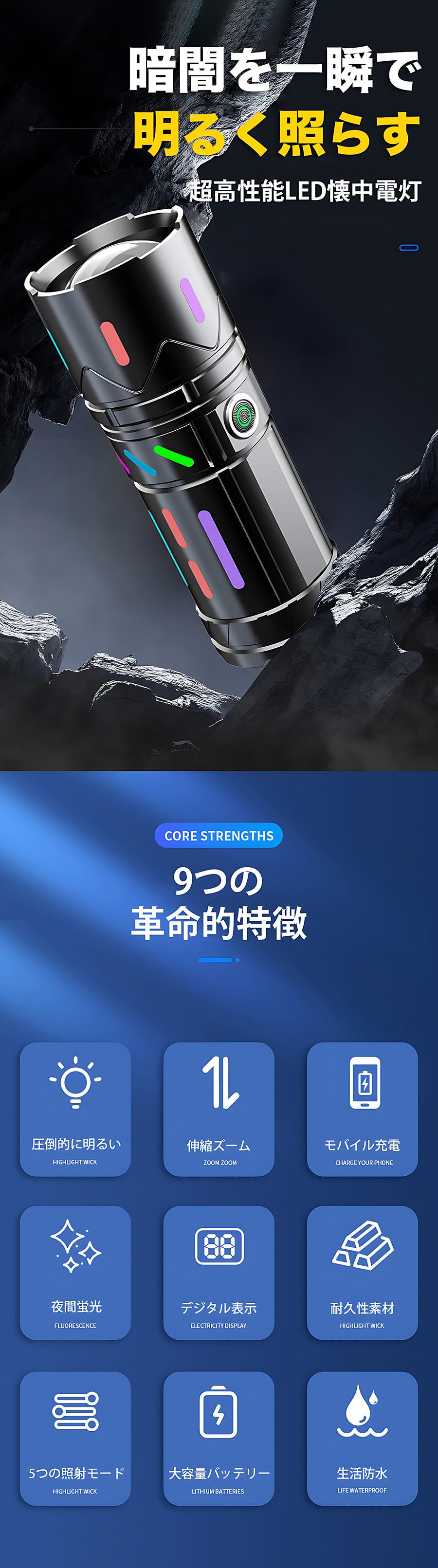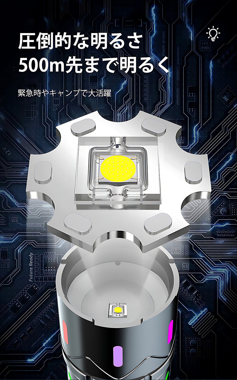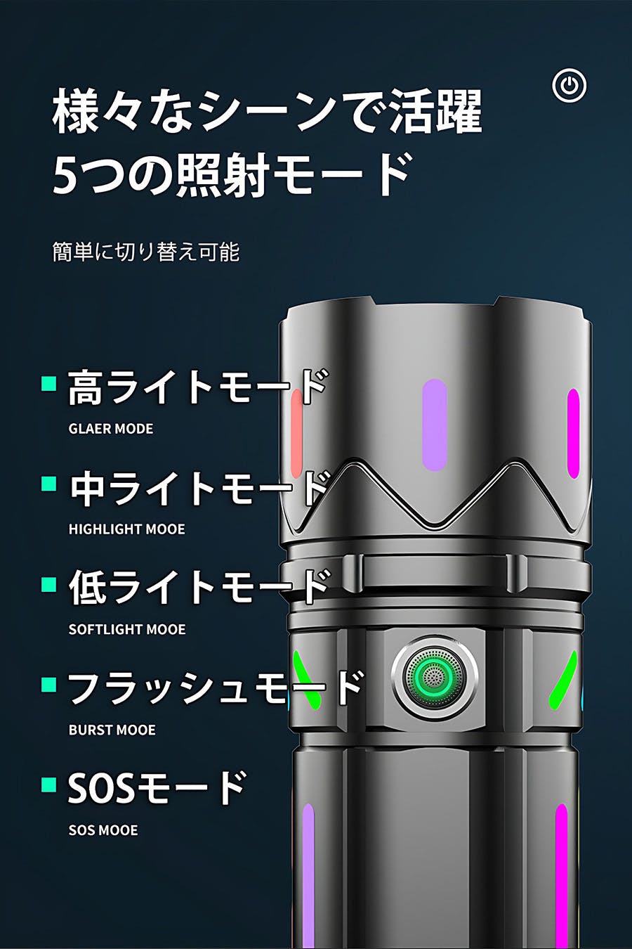 フラッシュモード・SOSモードは緊急時や災害時に役立ちます。