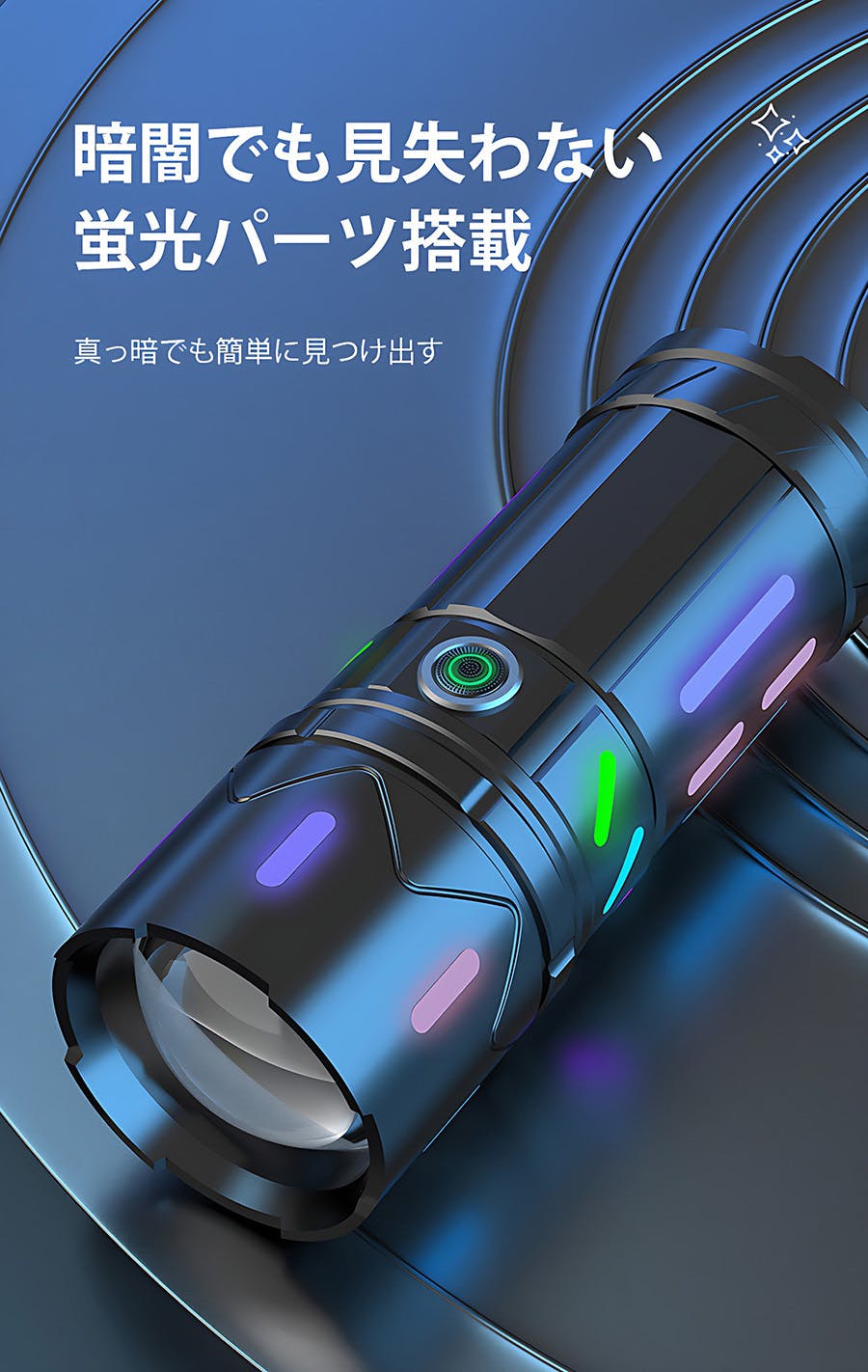 ボディに“蛍光パーツ”を搭載しているため、暗闇でも本製品を簡単に見つけ出すことができます。
