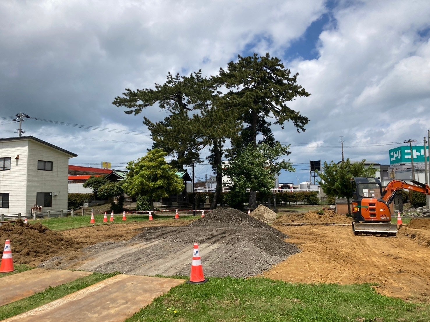 今日はアスファルト舗装のベースとなる砕石を入れて、不陸調整して平にする作業をしていただいています!