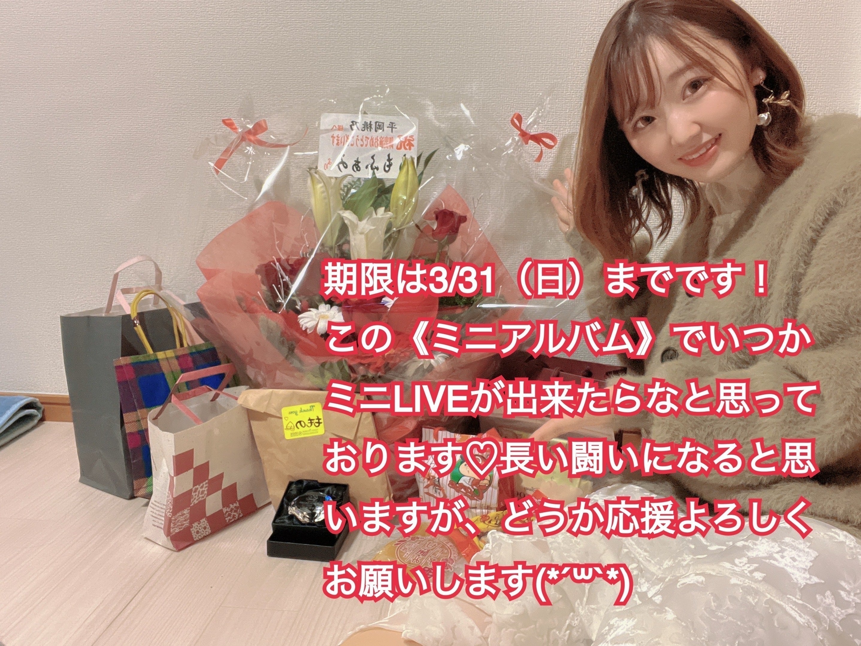 この《ミニアルバム》でいつかミニLIVEが出来たらなと思っております♡長い闘いになると思いますが、どうか応援よろしくお願いします(*´꒳`*)