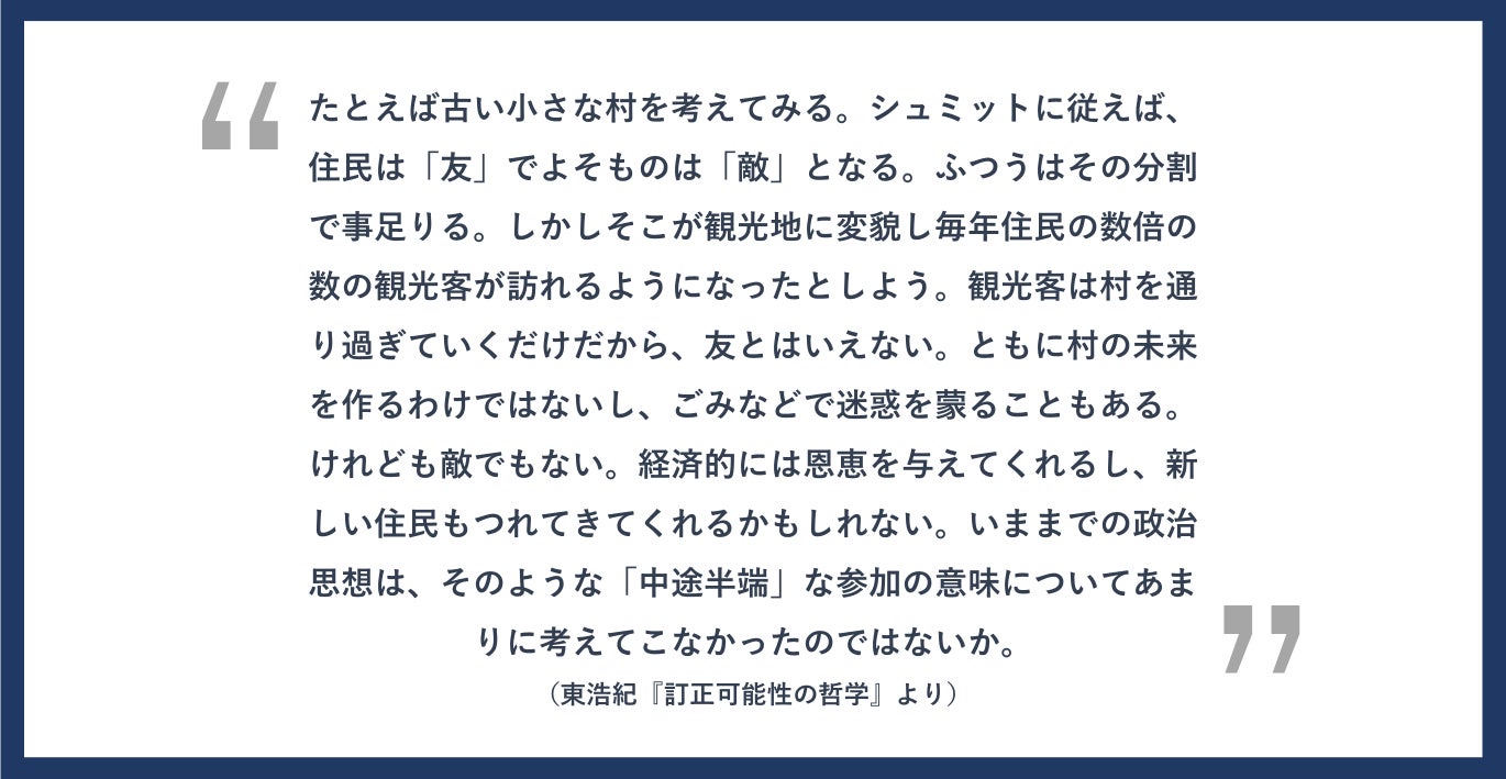 当事者と部外者の対立を超えた「第三者=観光客」として考えることこそが、「歴史として考える」ということなのではないか、と思います。