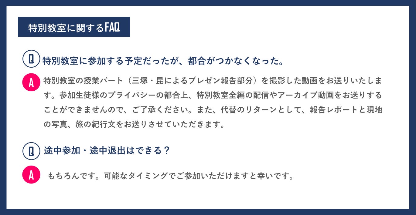 特別授業の内容自体についても、ご支援者の皆様からアイデアをいただき、それらを組み込んでいくことも考えたいです。どこまで実現できるか、という点はむろんございますが、皆様と共に作り上げるプロジェクトとなればと思います。ご要望があれば何卒よろしくお願いいたします。