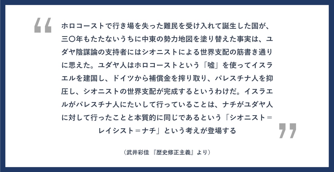 その一因として、僕たちはホロコーストの歴史があるのではないか、と考えました。ホロコーストという負の歴史が、反ユダヤ的と判断されかねない主張を困難にし、イスラエルの空爆を否定できないのが、世界の現状なのかもしれない。歴史を辿るという観点で言えば、歴史に学ぶということは、歴史に縛られる可能性もまた含んでいるということなのかもしれない。僕らはそう考えました。