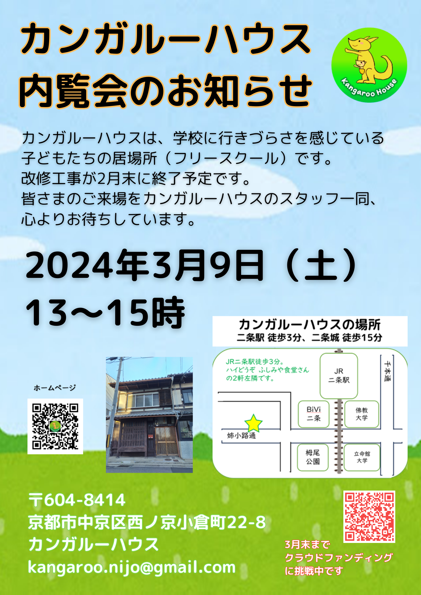 チームカンガルー(カンガルーハウスの支援者、応援者)の皆さま、内覧会の事前予約は不要ですので、お気軽にお越しくださいね。