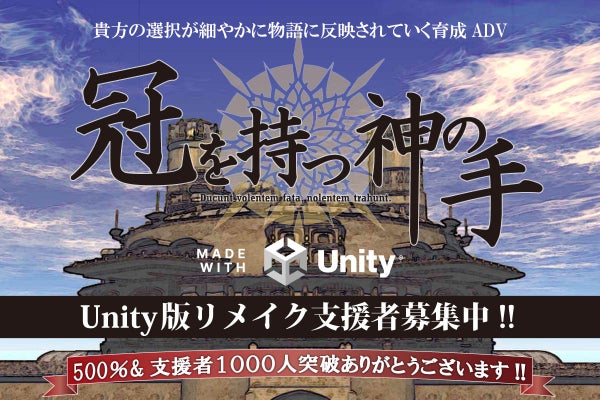 2025/10/27 00:01リリース予定日についてこの度は多数のご支援ありがとうございました。2025年秋を目途に開発を進めておりましたが、現在の進行状況を鑑み、2026年3月をリリース予定日といたします。大変申し訳ございませんが、今しばらくお待ちくだされば幸いです。開発状況といたしましては、何か問題に突き当たっているということはまるでなく、ただ単純に作業量がめちゃくちゃ多いというだけです。誰だこんな量の変数判定させたのは。リリースの段階は、まず日本語にて完成させ、その後になるべく早く韓国語・英語版を出したいと考えています。質問権の期限延長についてリリース予定日の決定に伴い、リターンの質問権の受付期間を2026/12/31まで延長いたします。制作スタッフについて不確定な部分があったので、お知らせが遅くなりましたが、キャラグラフィックは吉里吉里版に引き続き、羅伊紀が担当。イベント通常 ※画像は全て開発中のものです印象度入力 ※画像は全て開発中のものです休日選択 ※画像は全て開発中のものです ※リリアノは仮素材ですBGMは株式会社ネクスト・デザイン 南 俊介さんにご依頼し、全曲新規にてすでに完成いたしております。今回は舞踏会のBGMをお披露目いたします。 攻略支援版の販売終了について現在、Dlsite・Vectorにて販売している攻略支援版に関しては、誤購入を避けるためにも今年いっぱいで販売終了いたします。公式サイトの開設について作りました。他の画像とかあります。冠を持つ神の手 unity版 もっと見る
