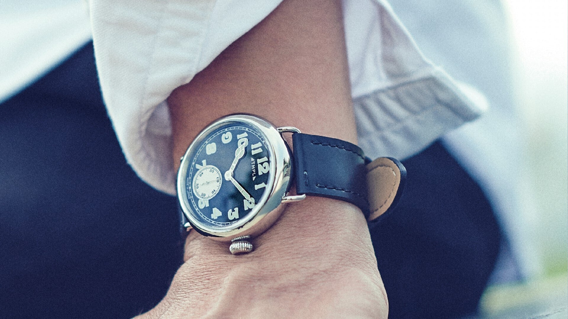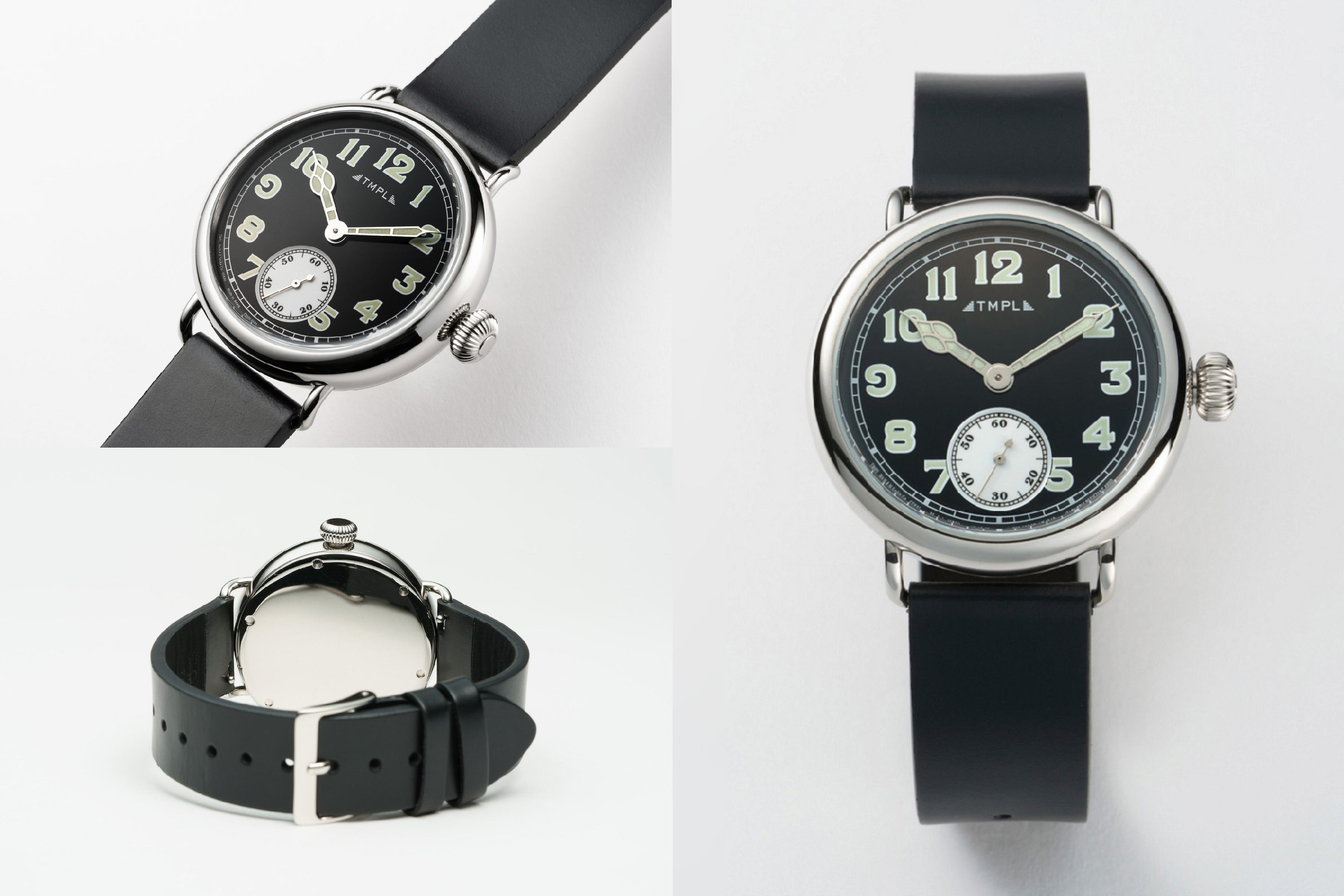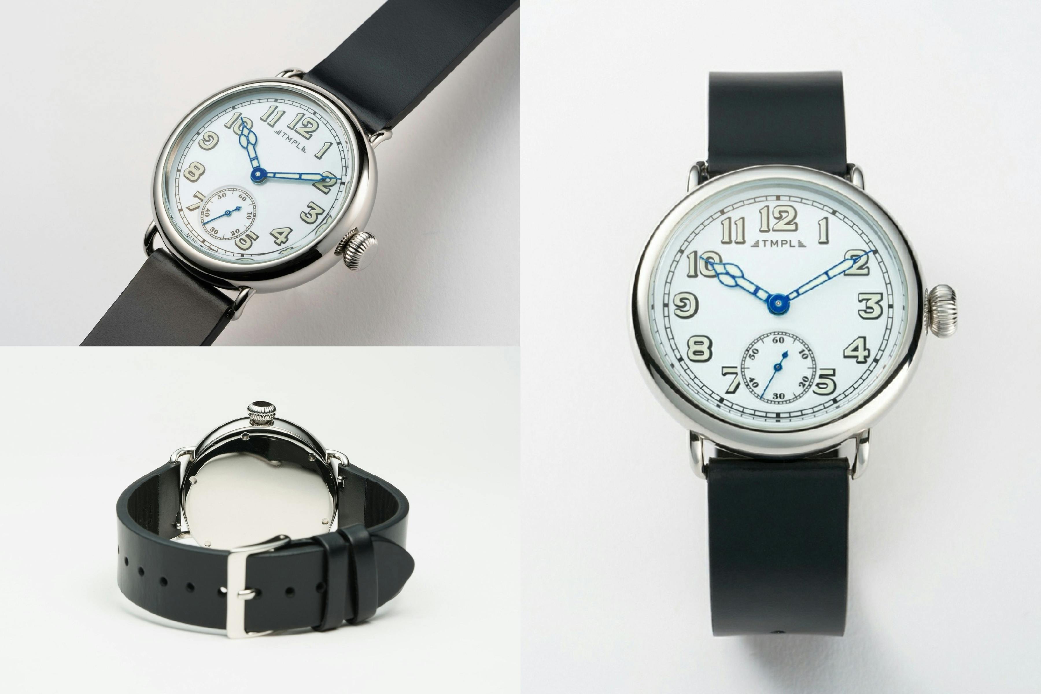 TMPLのファーストモデルでは、腕時計の黎明期となる1910年代のウォッチデザインを復刻。100年前の腕時計に見られる肉厚なフォルムや文字盤、象徴的な針の形をモンタージュし、現代的なサイズバランスの中に落とし込んでいます。