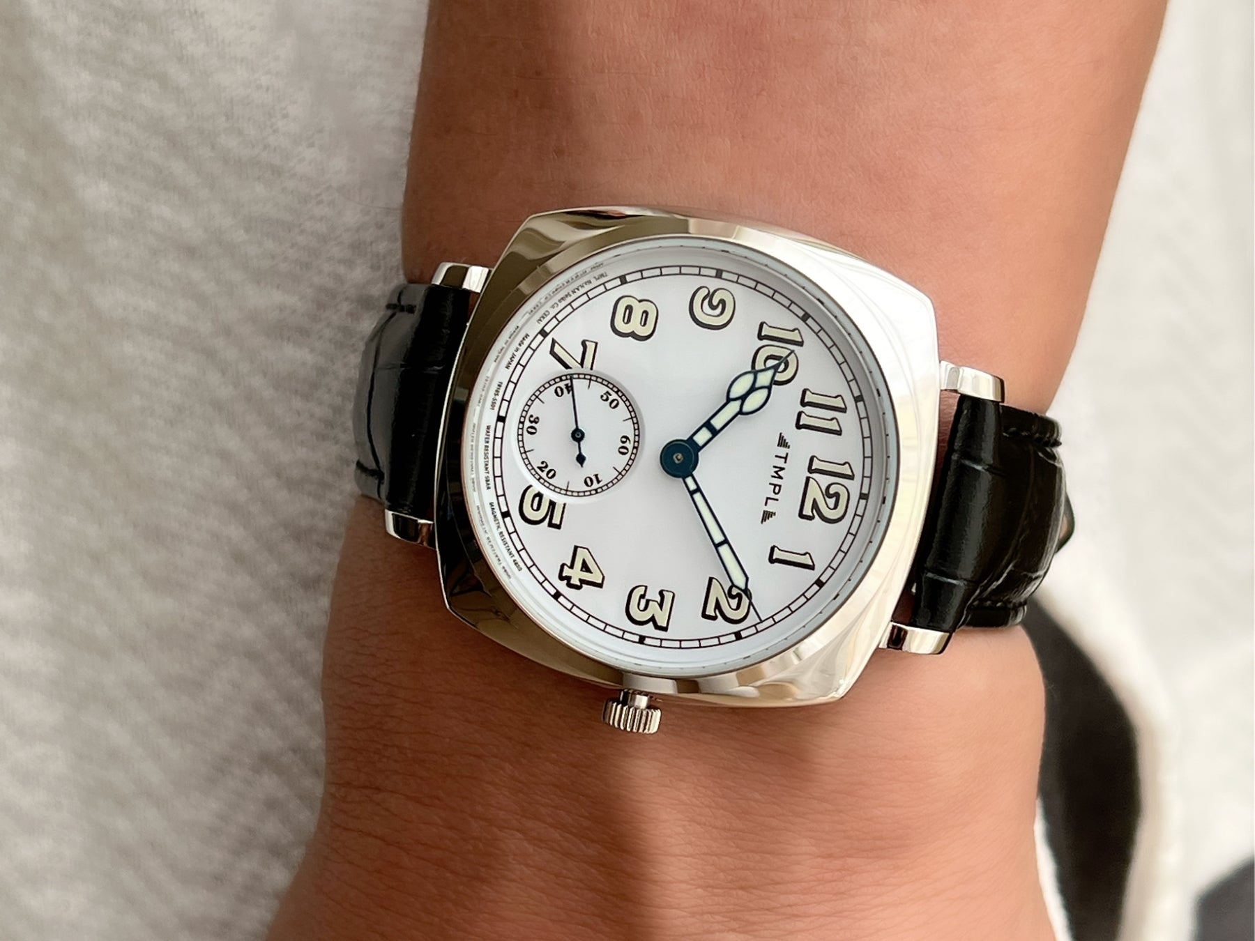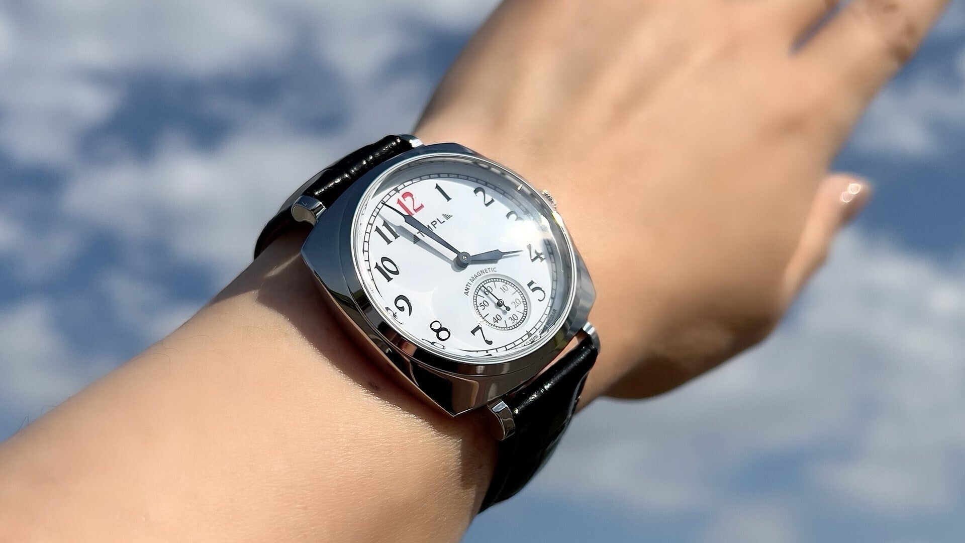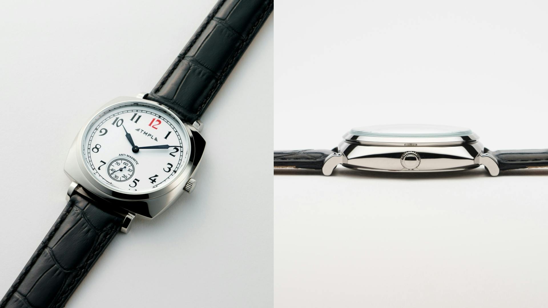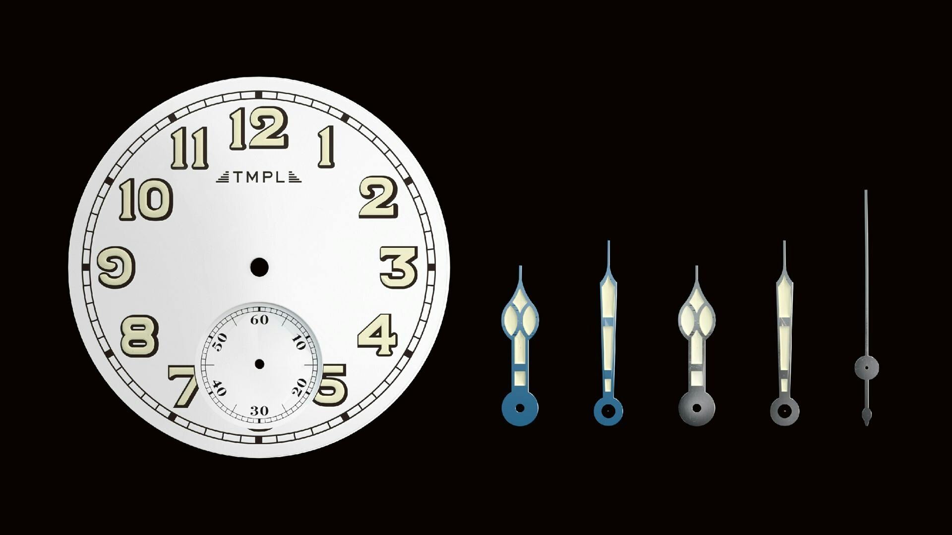 TMPLのファーストモデルでは、腕時計の黎明期となる1910年代のウォッチデザインを復刻。100年前の腕時計に見られる肉厚なフォルムや文字盤、象徴的な針の形をモンタージュし、現代的なサイズバランスの中に落とし込んでいます。