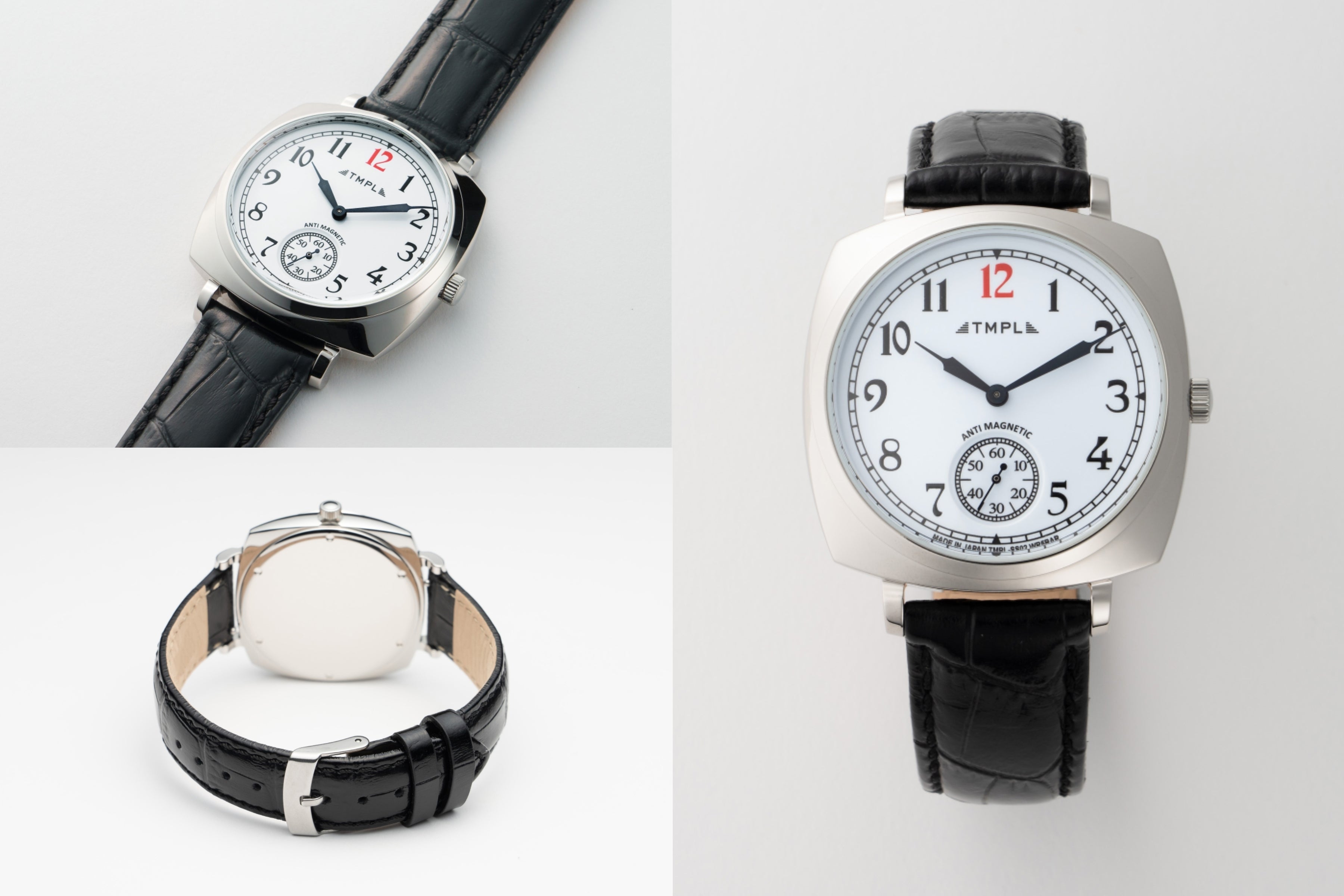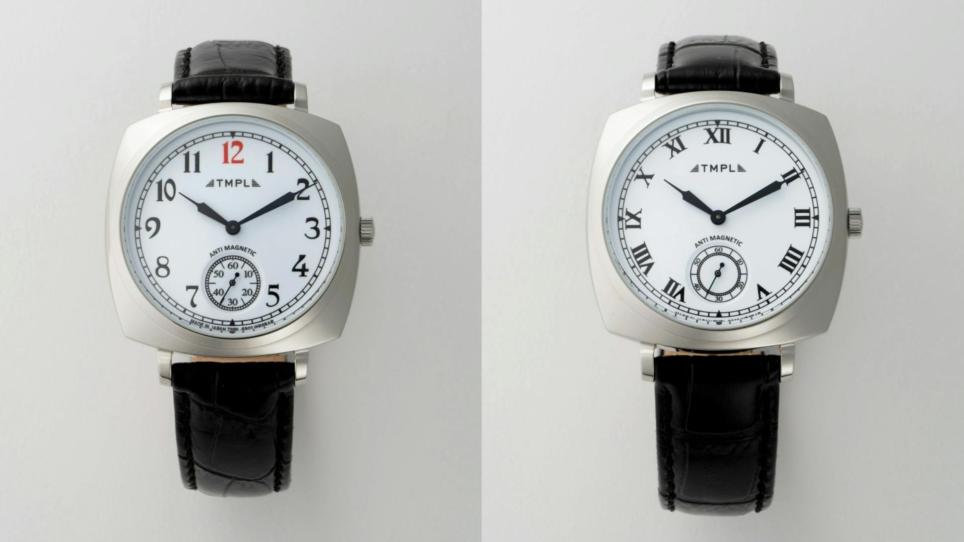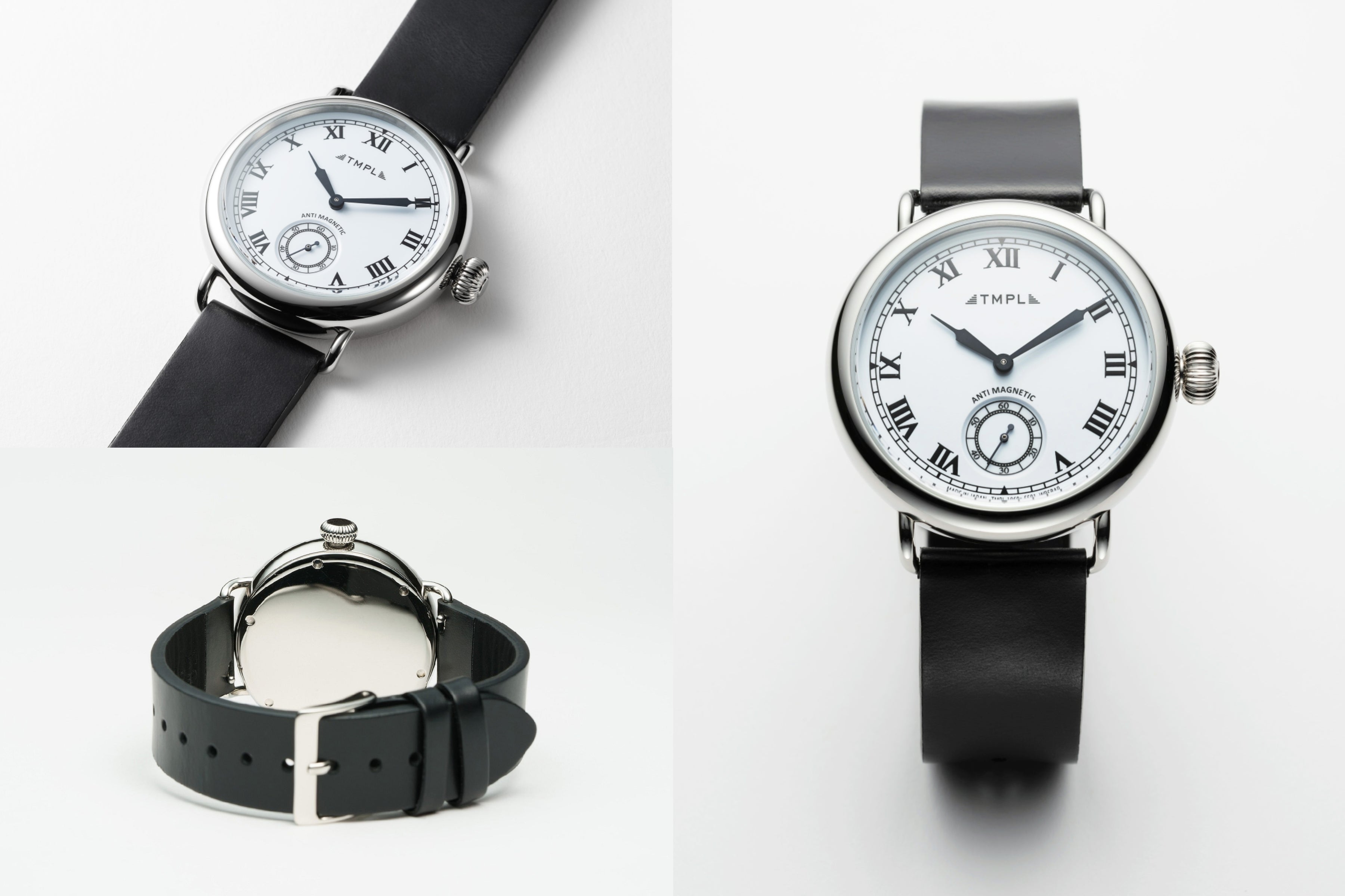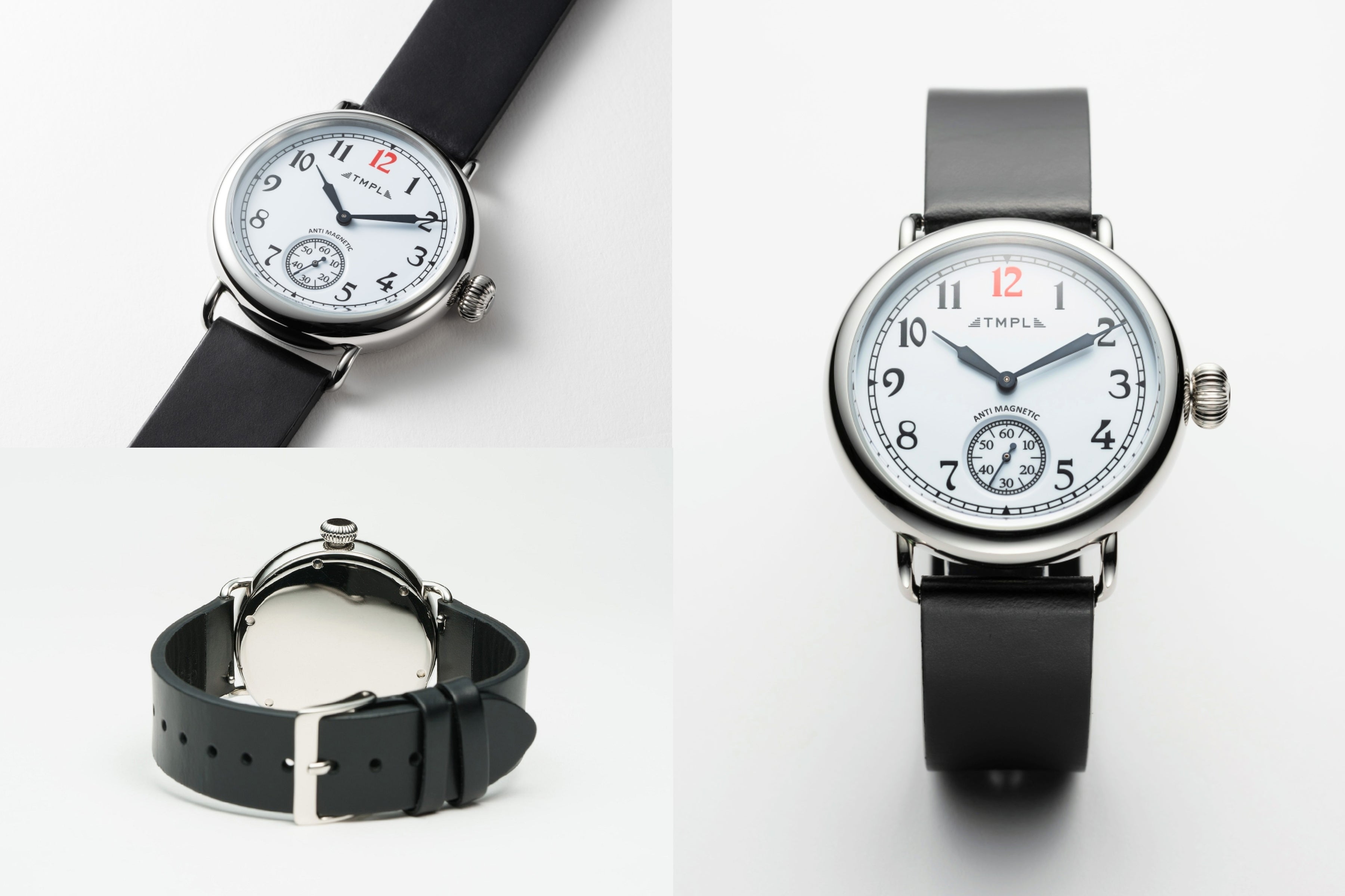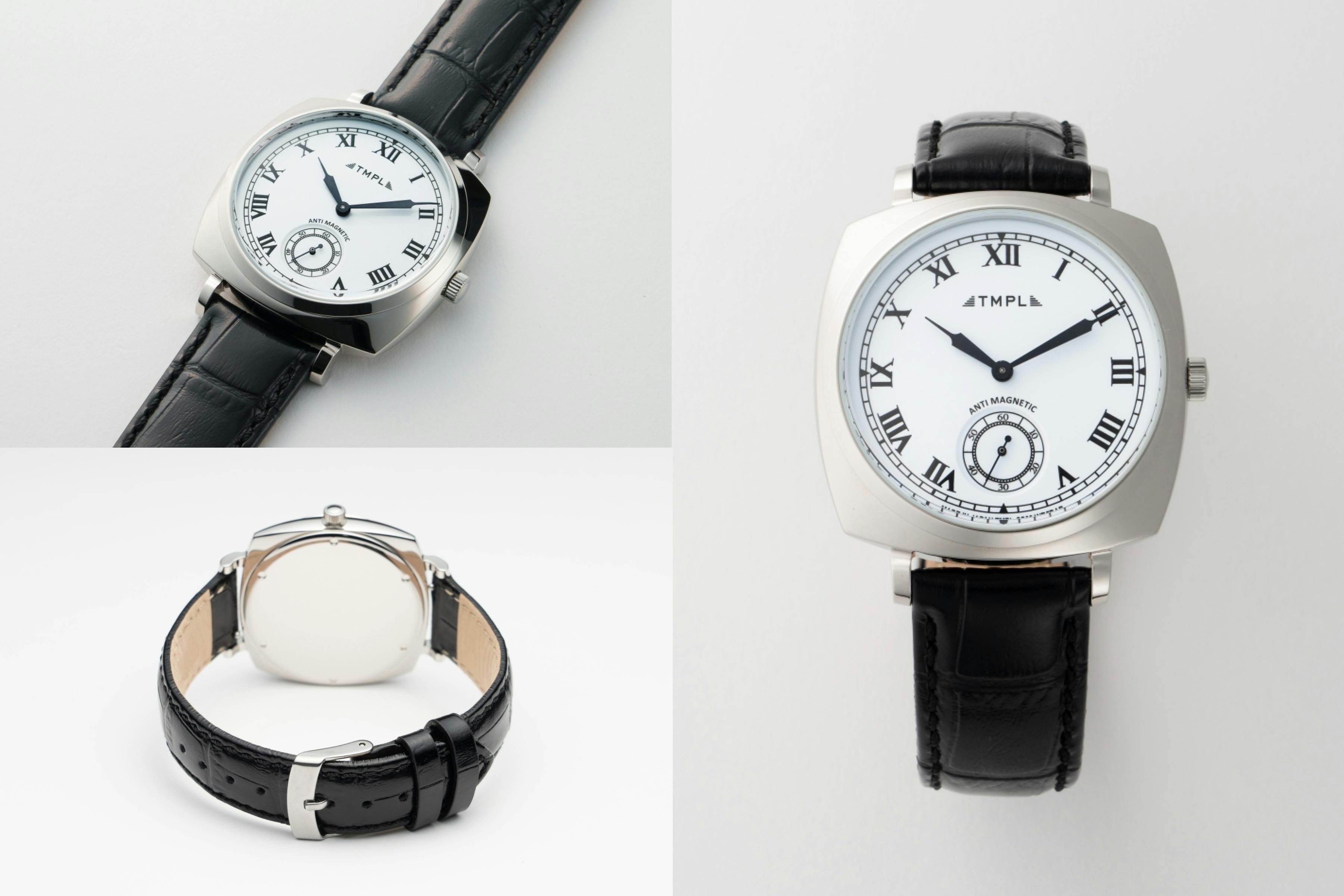 TMPLの腕時計は、各時代の懐古的なフォルムを踏襲し、当時の雰囲気を感じさせつつ、使い勝手の良い現代的なサイズバランスに仕上げています。老若男女問わずどなたにもご着用いただける、大きすぎず小さすぎない程よいサイズ感にまとめながらも、文字盤は最大限大きくし、デザイン性と見やすさの両立を実現しました。