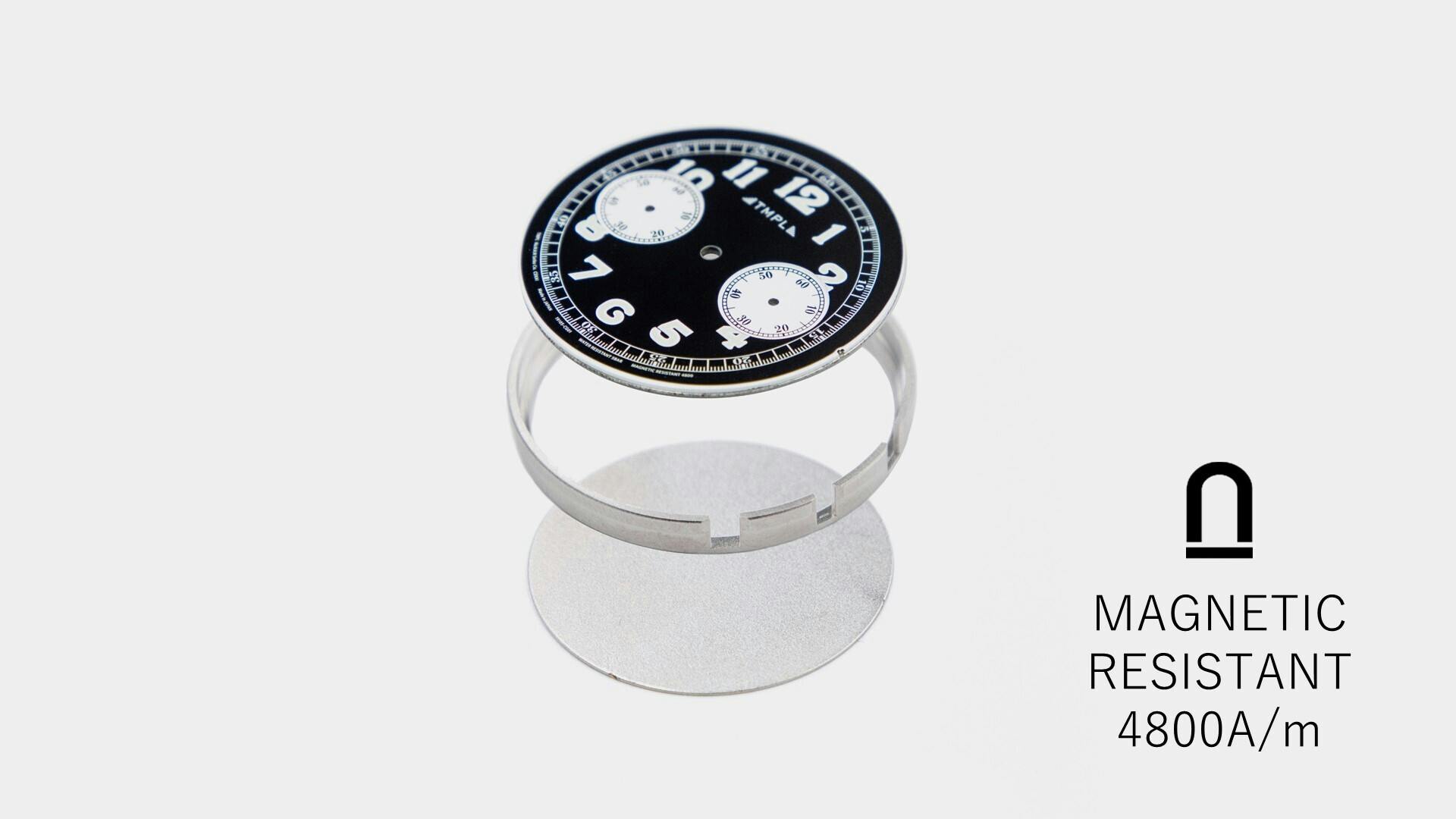 また、日常的にPCやスマホなど磁気と接触する昨今において多いのが、磁気によるトラブルです。弊社工場直営の店舗「時計屋復刻堂」に持ち込まれる修理品も、磁気の影響が故障の原因となってるものが多数あります。TMPLでは、磁気から時計を守るMAGNETIC RESISITANT4800の耐磁性能を確保する為、高級時計に採用される特殊な構造を採用しています。