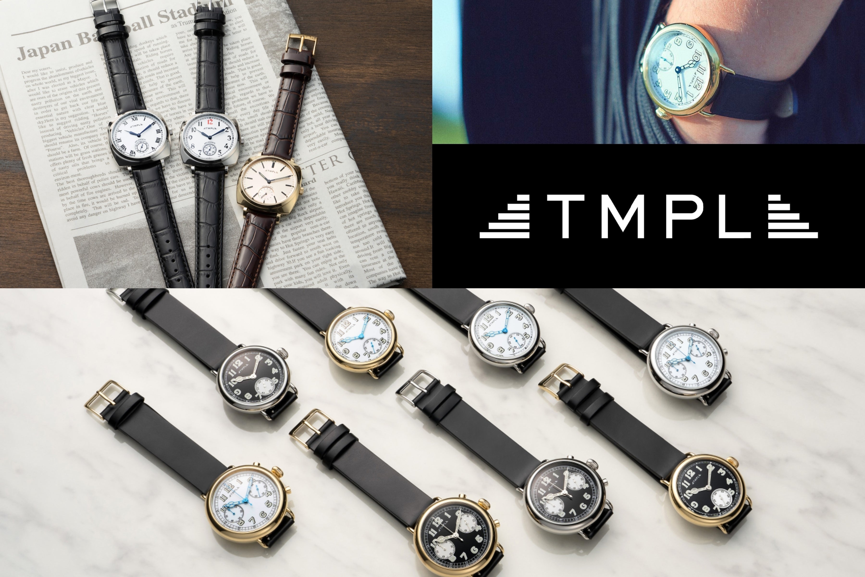この度はTMPLのプロジェクトをご覧いただき誠にありがとうございます!「TMPL(テンプル)」は、時代とともに変化してきた”ウォッチデザイン”に注目し、独自の視点で復刻する実験的で新しい腕時計ブランドです。「WEAR THE AGE.」=「時代を身に着ける」をテーマに、歴史を感じるレトロなウォッチデザインを現代に蘇らせています。2018年に発表したTMPL FIRST MODELでは、腕時計の黎明期である1910年代のウォッチデザインを復刻しました。時計を腕に身につけるという習慣がまだ浸透していなかった1910年代の腕時計は、女性用懐中時計のムーブメントを使用した小ぶりなものが主流でした。懐中時計の名残を感じさせる丸いケースと、大きな竜頭。TMPLファーストモデルはそのフォルムを踏襲し、当時の雰囲気を感じさせつつ、現代的なサイズバランスに落とし込むことで、どなたにもご着用いただける普遍的なデザインの時計に仕上げました。2022年に登場したTMPL SECOND MODELは、1920年代および1960年代のウォッチデザインを復刻。クッション型やトノー型など、様々なケース形状が登場したことで、腕時計のデザインにとってひとつの転換点となった1920年代。それまではアラビア数字が主流だった文字盤に、ローマ数字やバーインデックスのものも多く見られるようになり、さらにデザインの幅が広がった1960年代。TMPL SECOND MODELでは、ケースの4辺を膨らませたクッション型のウォッチケースや、伝統的な黒染め加工を施した針などを採用し、そんな1920年代・1960年代の印象的なウォッチデザインを丁寧に再現しています。そして、ブランド3作目のモデルとなるTMPL FUSION MODELでは、各時代の特徴的な文字盤・針・ケースのデザインを融合。既存のモデルとは一味違う、それぞれの時代のウォッチデザインの特徴と魅力が合わさった、懐かしくも新しいデザインの腕時計を作りました。今回のプロジェクトでは、そんなTMPLの腕時計の中から、シルバーケース・スモールセコンドのモデル8種類と、交換用のカラーストラップ3色を自由に組み合わせてお選びいただけるようご用意いたしました。ベルトの色によっても時計の雰囲気が大きく変わりますので、ぜひお好みの組み合わせを見つけていただければと思います。ぜひこの機会にTMPLを通して、クラシックウォッチの美しいデザインや歴史、新しい魅力に触れていただければ幸いです。ご支援よろしくお願いいたします!