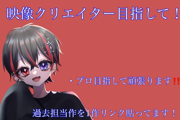 現在はフリーでSNSのX(Twitter)を通して歌い手やVTuber、配信者様のMVや配信待機画面などの依頼をお受けして映像制作の実績作りや実践を通しての学習をしています。