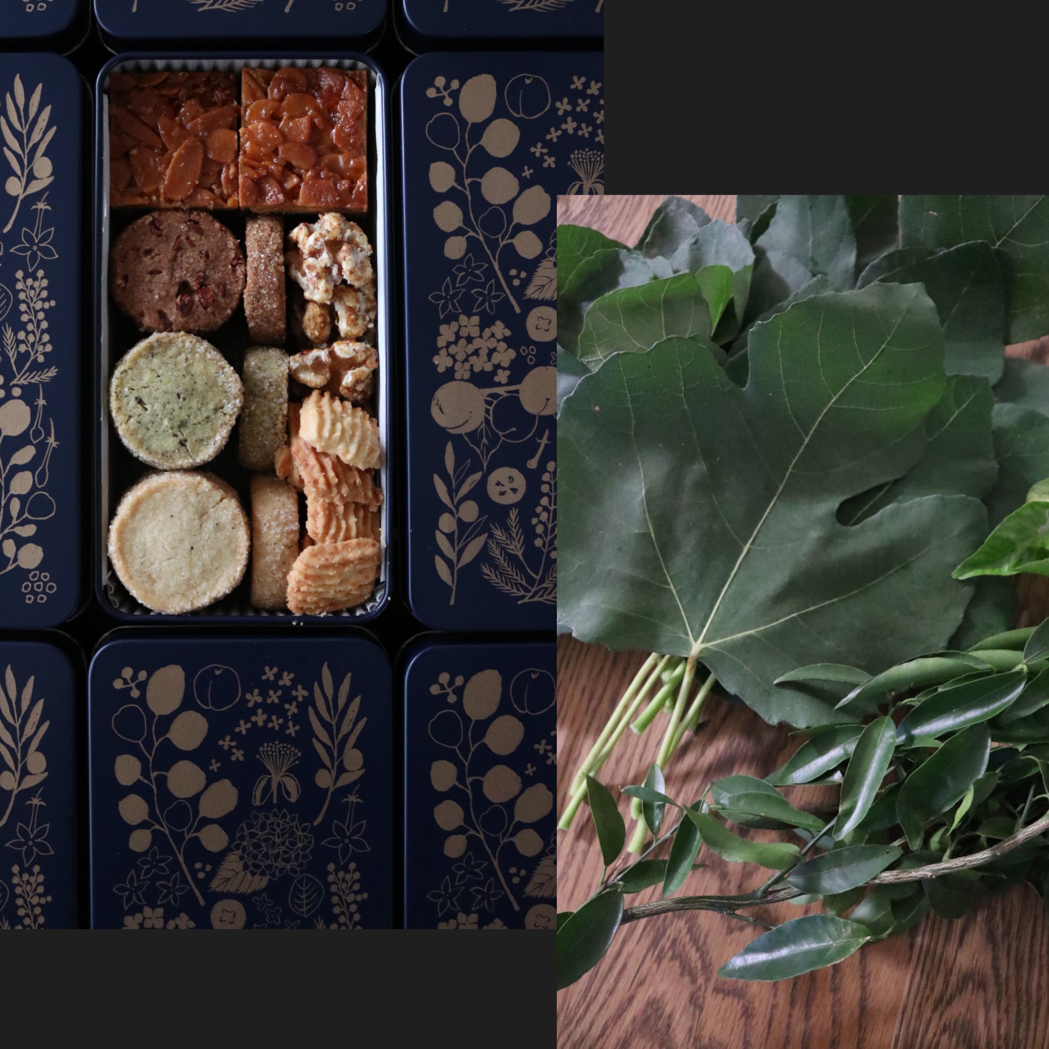 植物の葉を使用したクッキー缶
