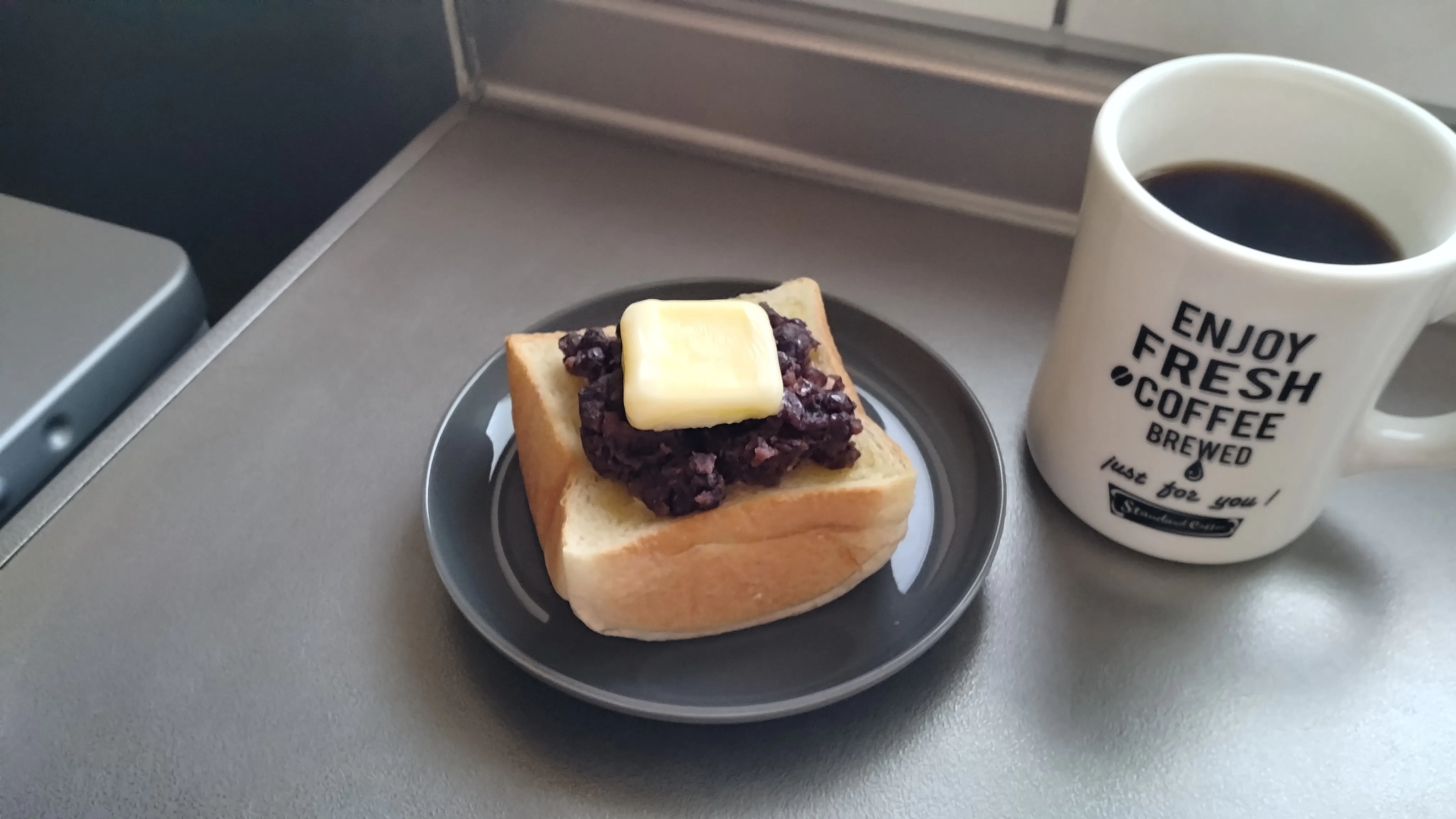 日曜日は試作をしたあんバタトーストにホットコーヒーを合わせてみました。開業準備と称して、パンの種類を変えながら糖分の大量摂取にいそしんでおります。