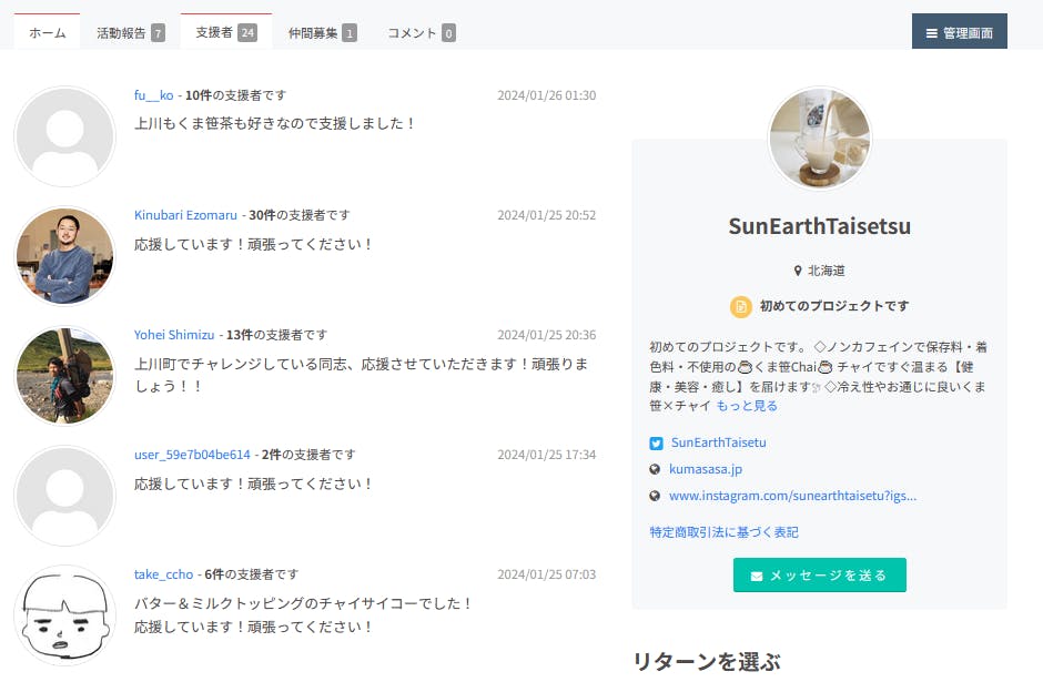 以前クラファン挑戦された方々からのご支援と応援アドバイスをいただき