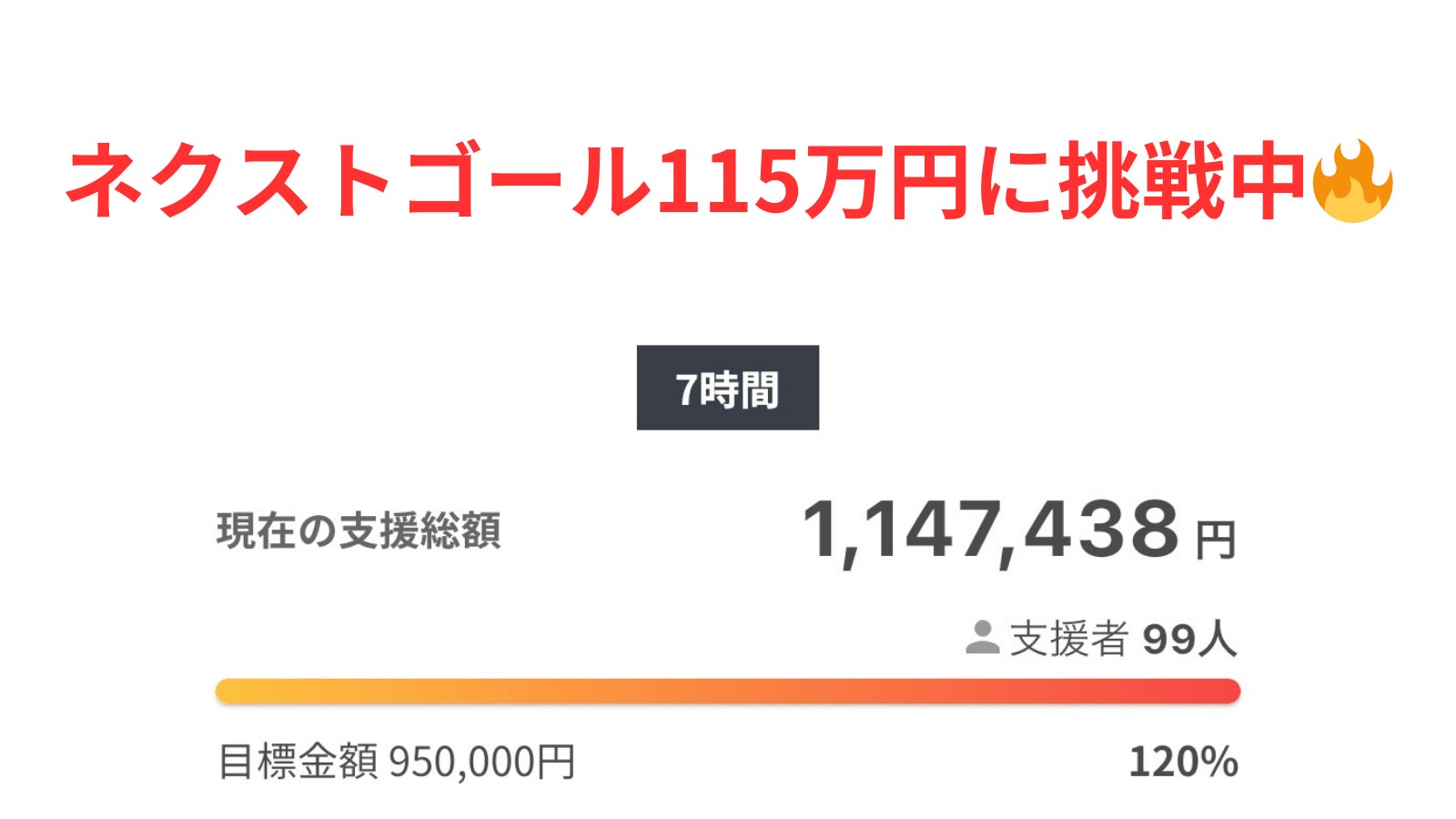 現在、総支援者数99人、支援総額114万7,438円に到達しました。