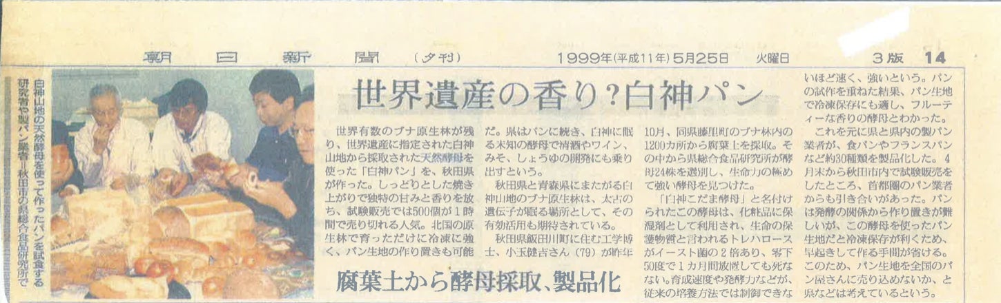 悠久の時を抱くブナ原生林の腐葉土から、秋田県総合食品研究所(当時)と小玉健吉工学博士によって発見されたパン用酵母は、発酵力があって、フルーティーな味や香りを醸し出す「日本の大地が育んだ、世界の遺産たるパン酵母」でした。