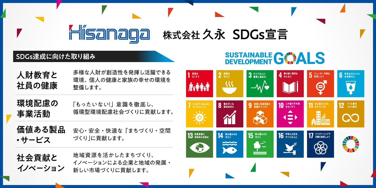 そんな久永さんの経営理念には「地域に根差し、地域と社員が共に成長し、常に地域に貢献する企業を目指す」と書かれており、この実現のために、SDGs宣言を出されています