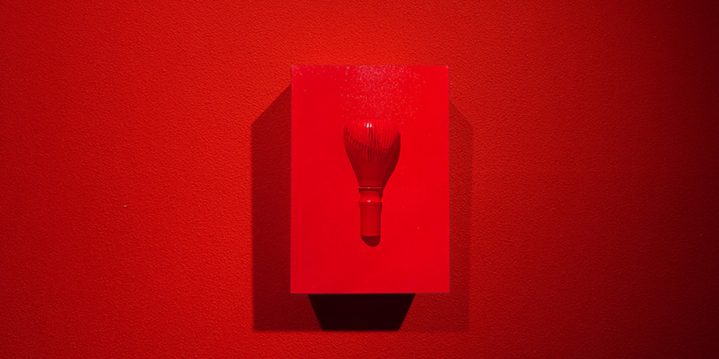 浜崎の代表的なパフォーマンス「Red Tea Ceremony(お茶会)」を作品として具現化。茶道に関連する三部作「丿健の三種の神’器」と題したシリーズの第一弾「SHAKE(茶筅)」です。