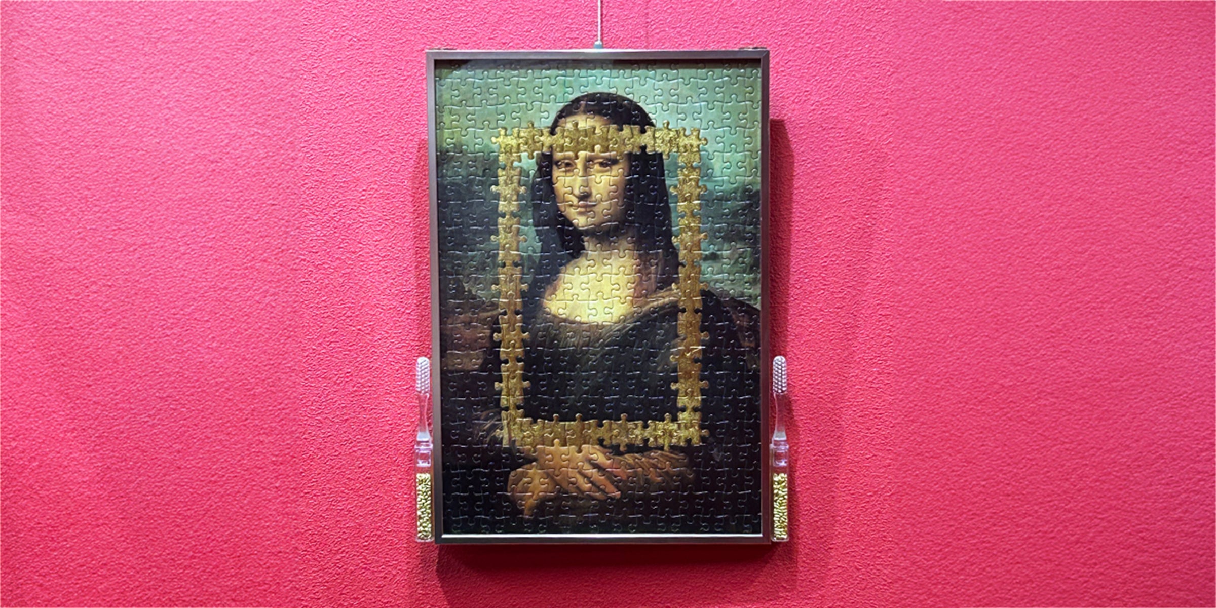 これまで何度か発表してきたモナリザのパズルを用いた「パズルペインティング」シリーズ。ランダムに色を付けたパズルを組み合わせて偶発的に再構築されたモナリザのほか、本シリーズでは「モナリザ」「金」「数字」を「世界共通の価値展」として発表しました。