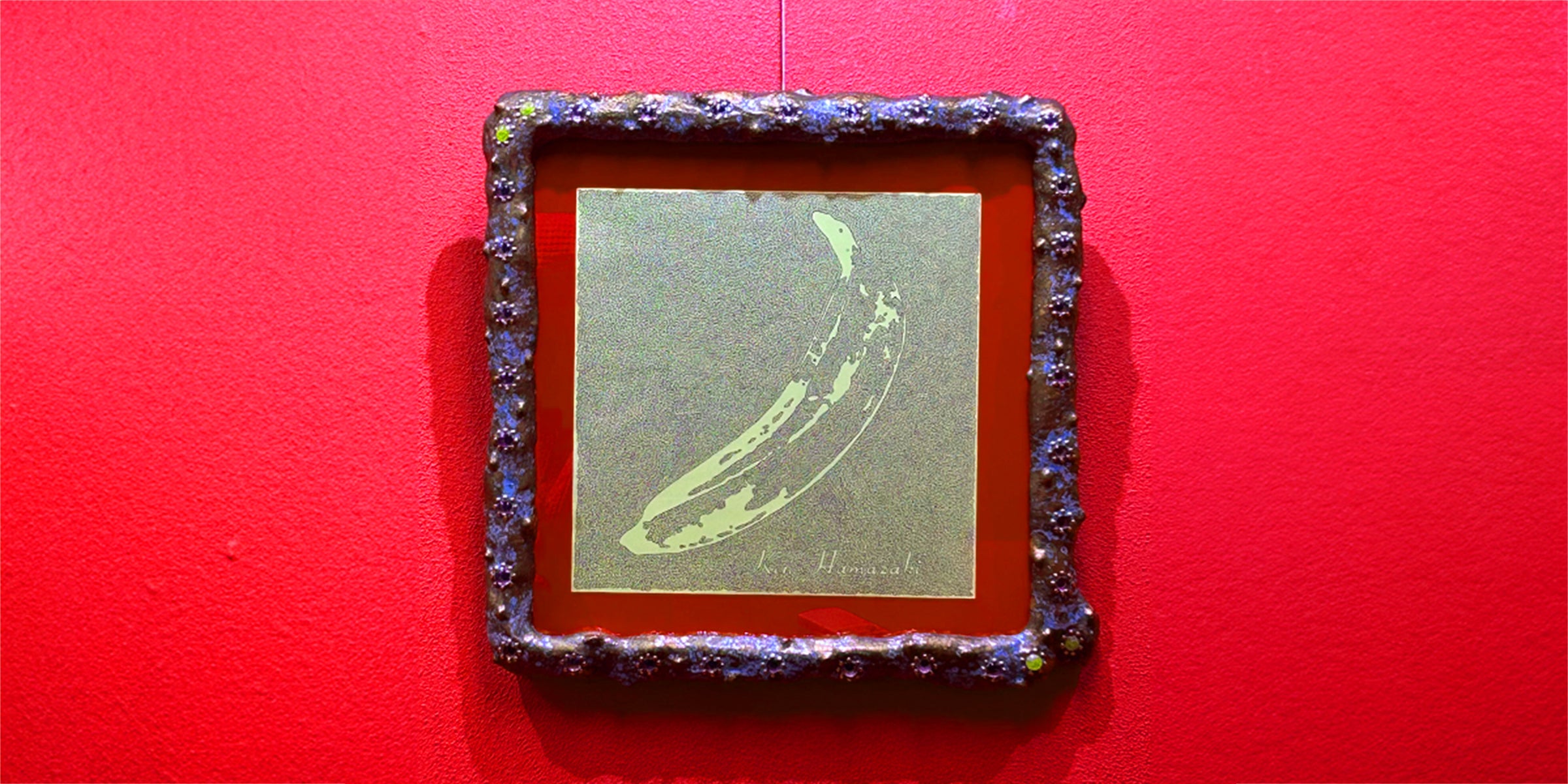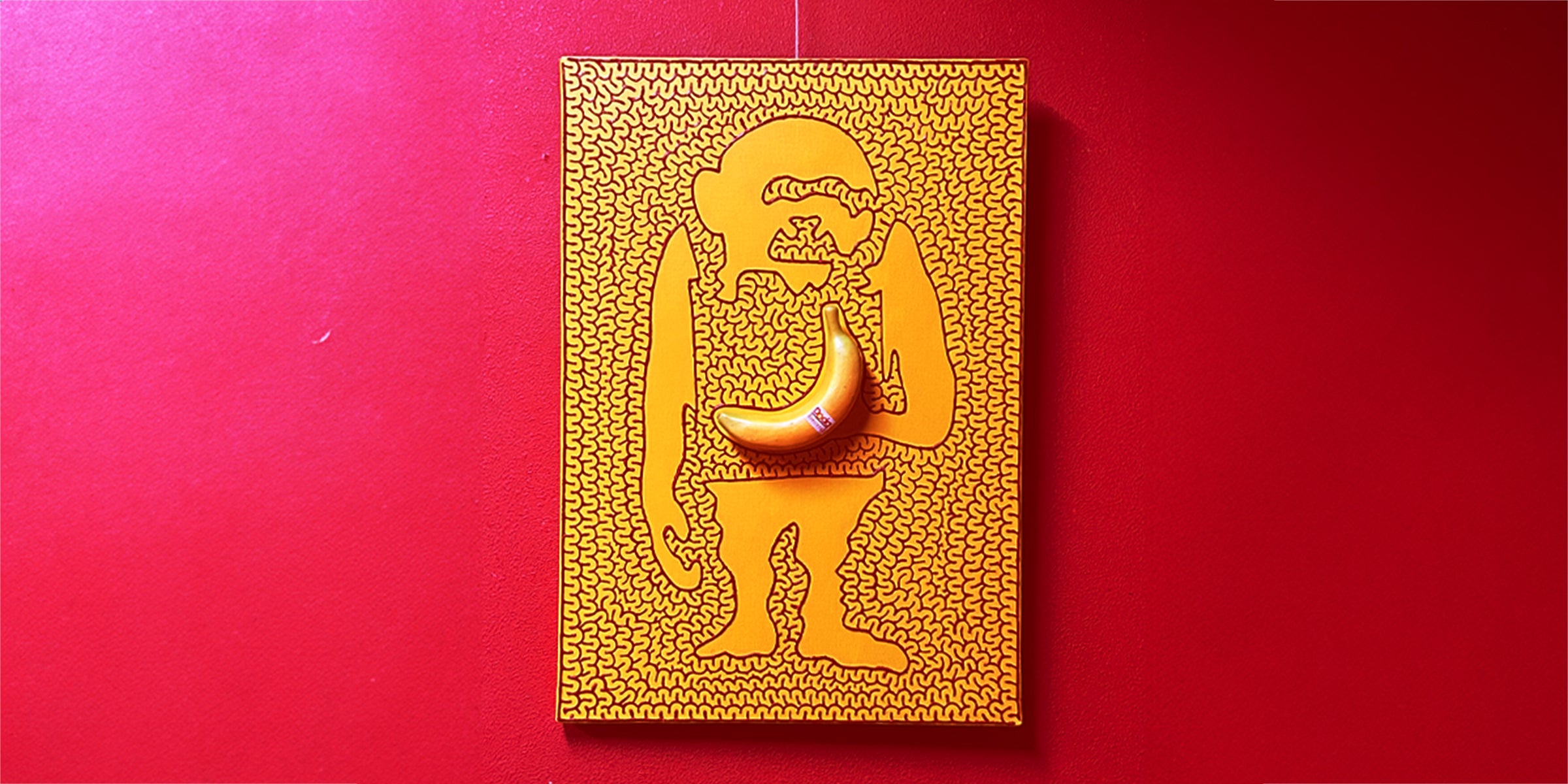 影響を受けたアーティスト、ヴェルヴェット・アンダーグラウンド&ニコのデビューアルバムとして知られる、アンディ・ウォーホル制作の「バナナ」のジャケットをモチーフに、浜崎が幼少の頃から無意識に描いていたという「迷路」の画法で完成させた「迷宮の絵画展」の作品です。
