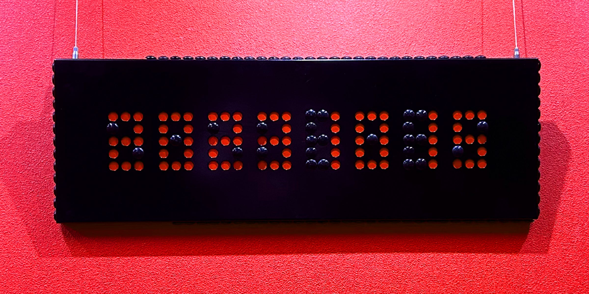 作っては消す「砂曼荼羅」から着想を得た、磁石を用いて変幻自在に作品を作り上げる「MAGNET PAINTING」。直径1.5cmの磁石を鉄板の上に自在に貼り付け、肖像画のほか、デジタル表示のように変化するカレンダー作品として「今日は何の日?」展にて発表したものです。