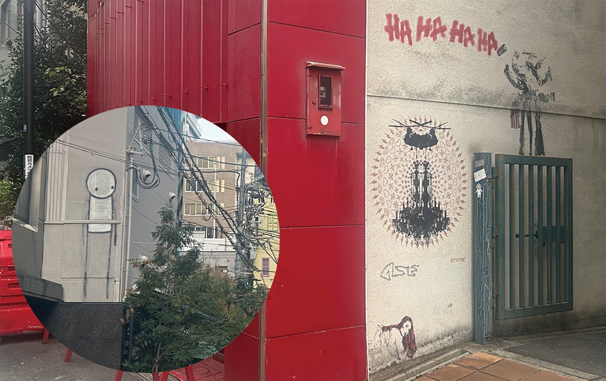 ビル壁面にはNick Walker、STATIC、Ken Hiratsukaのミューラルが。さらにお向かいのアマーク・ド・パラディにはStikも