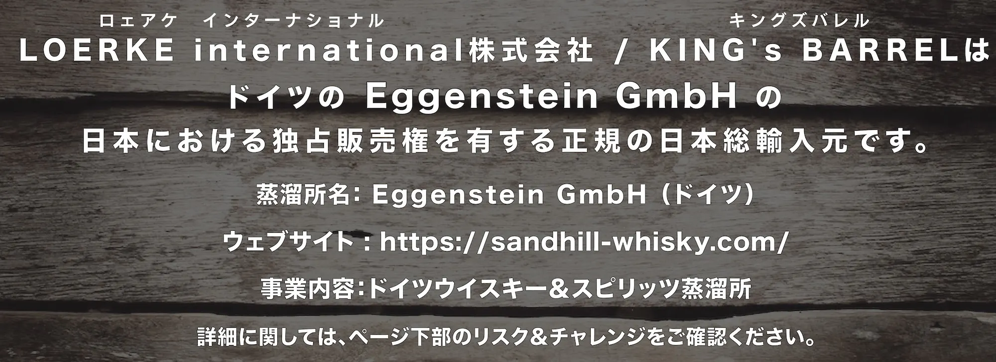 クラウドファンディングの性質上、以上の注意点につきましてあらかじめご理解とご了承いただいた上でご支援くださいますよう、よろしくお願い致します。 最後に、支援をして頂いた皆様へ喜びと感動を届けられるよう、「支援してよかった!」と思っていただけるよう、心を込めて丁寧に対応させて頂きます、ドイツと北欧の美味しいお酒を広めていけるようキングズバレルの応援をどうぞよろしくお願いします!また、当プロジェクトの内容や進捗状況は逐一、蒸溜所と情報共有し一緒に見守っています。ドイツ/バート・ベルツィヒから遠い日本の皆さんへおいしいお酒を届けられるのをとっても楽しみにしています。100%ドイツ産シングルモルトウイスキーの驚きのおいしさを広めるため、たくさんの方に支援して頂けると幸いです、宜しくお願いします!
