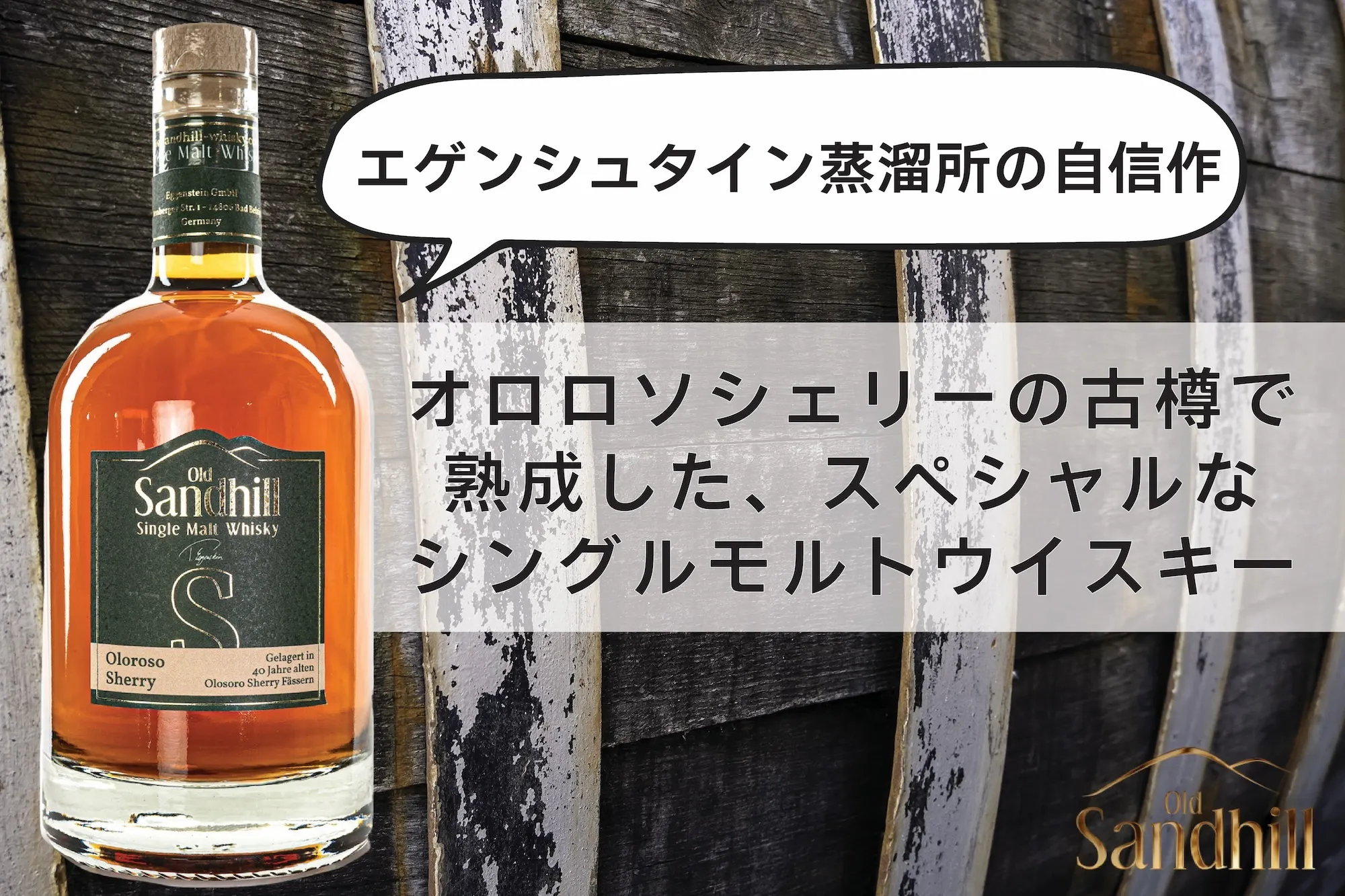 「Alter Sandberg(ドイツ語で古(いにしえ)の砂の山)」と呼ばれる素敵な旧市街に位置するエゲンシュタイン蒸溜所。その歴史ある地名を英語にした「オールド・サンドヒル」と名付けられた100%ドイツ産のシングルモルトウイスキーは、どれも非常にまろやかで奥深い味わいだ。6種類あるオールド・サンドヒル・ウイスキーだが、ここで、当プロジェクトのメインである「オロロソシェリー 40 スペシャル・エディション」と一緒にぜひお勧めしたいオールド・サンドヒルを代表するウイスキーを2つご紹介。今回のクラウドファンディングのプロジェクトでは、オロロソシェリーとセットになったお得な価格のリターンもご用意しているので、ウイスキー好きには絶対にチェックしていただきたい!