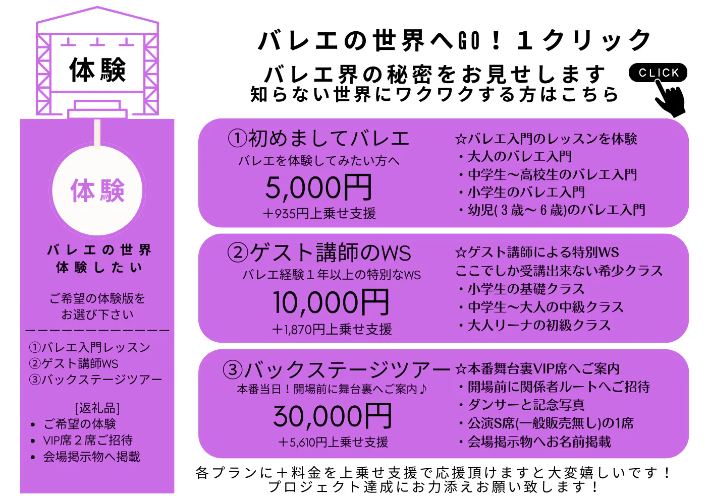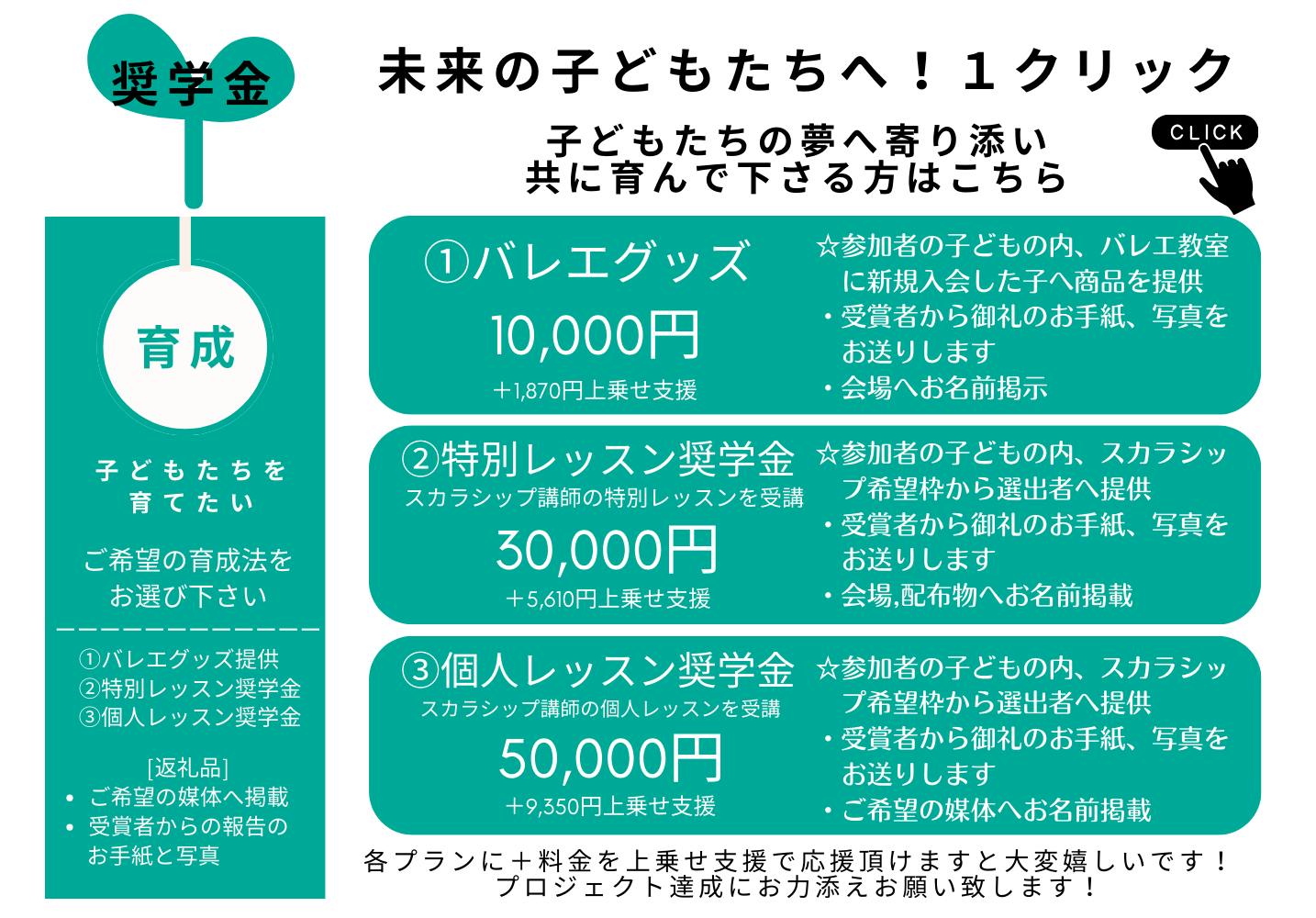 ①10,000円 参加者の子どもにバレエグッズを提供したい