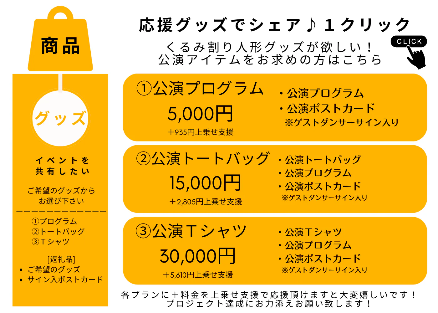 ご支援+公演グッズ「くるみ割り人形」アイテムが欲しい!という方、こちらをおすすめします。