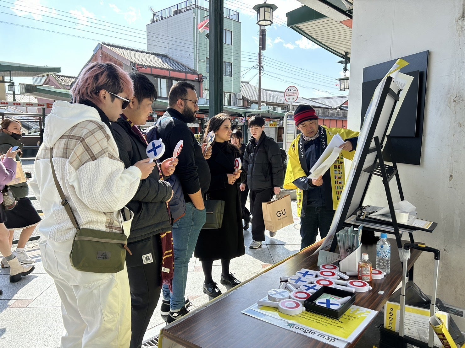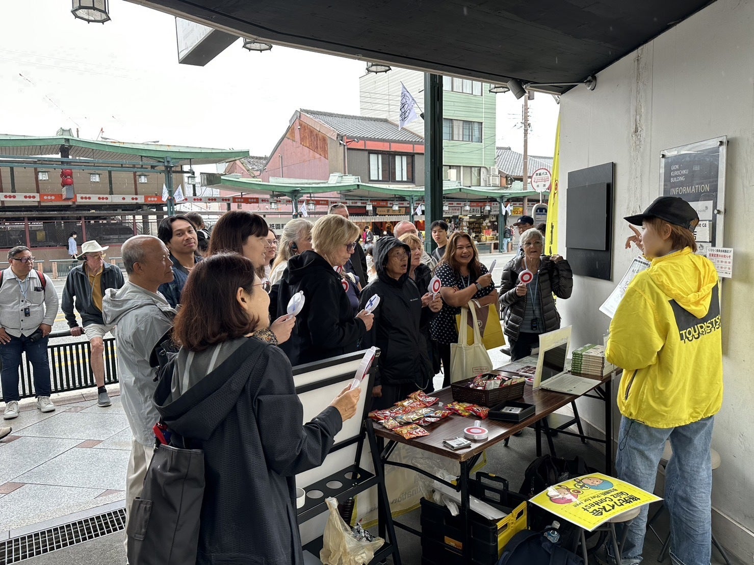 2024/03/04 23:32本日も強風の中、昨日に引き続き京都祇園で旅先クイズ会を開催致しました。77名の方にご参加いただきました。強風だったので、旗や横断幕が風で飛んでいきそうだったので、外していました。今後、強風でも告知できる方法を考えていきたいと思います。実は、来週・再来週とスタッフ不足のため、残念ながら旅先クイズ会は未開催予定です。私どもも、何とか継続的に実施できるよう色んな所に働きかけして一日でも多く開催できるよう取り組んでいきたいと思いますので、皆さま、ご支援のほどよろしくお願い致します。 もっと見る