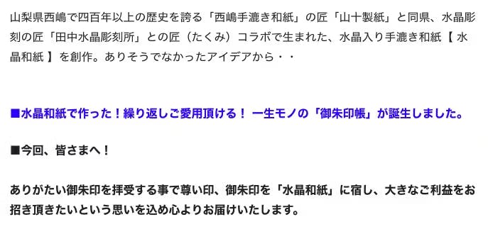 最後に多くの皆様に本商品「水晶和紙」の御朱印帳をご愛用頂き、大きなご利益をお招き頂けますよう心よりお祈り申し上げます。