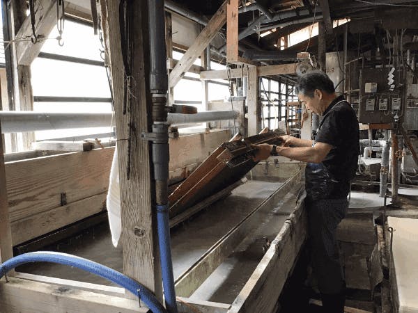 機械では難しく、手漉きの和紙でなければならないと言われる和表具紙類や画仙紙、美術工芸紙、民芸紙などの高級手漉き和紙を手掛ける山十製紙随一の腕を持つ匠。
