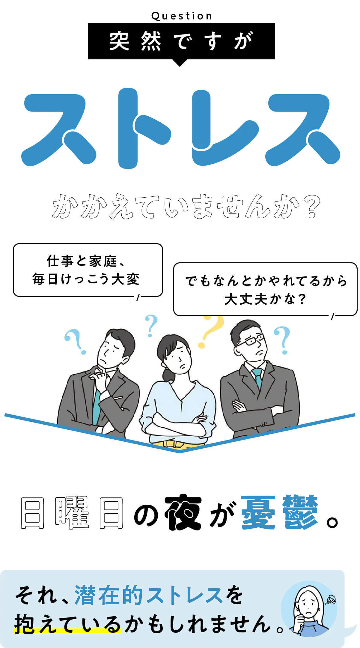 「日々のストレスが辛くて苦しい」そう自分自身を捉えている人。
