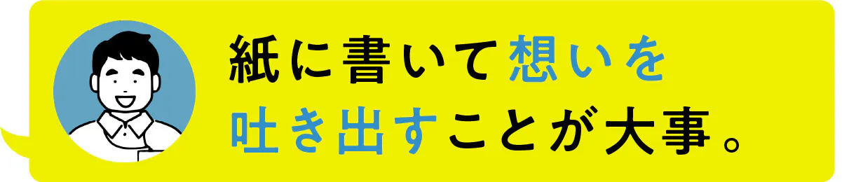 それでは本当の自分と向き合えませんし、そもそも他人に自分の全てを言える人はいないと思います。自分自身の気持ちと100%向き合うために紙に書き出すことを強くおすすめいたします。