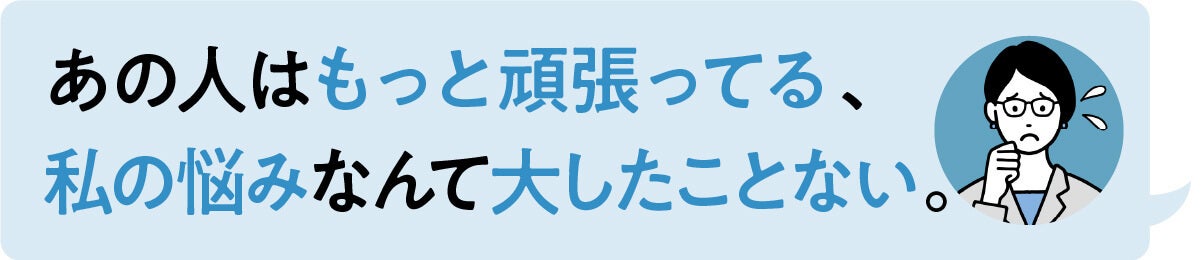 今思うと、自分の悩みを他人と比較する時点で客観的に自分の感情を理解できていなかったなと感じます。悩みに大きいも小さいもないと思っています。ある人には小さいものが自分にとっては大きなものなんです。その逆も然りです。