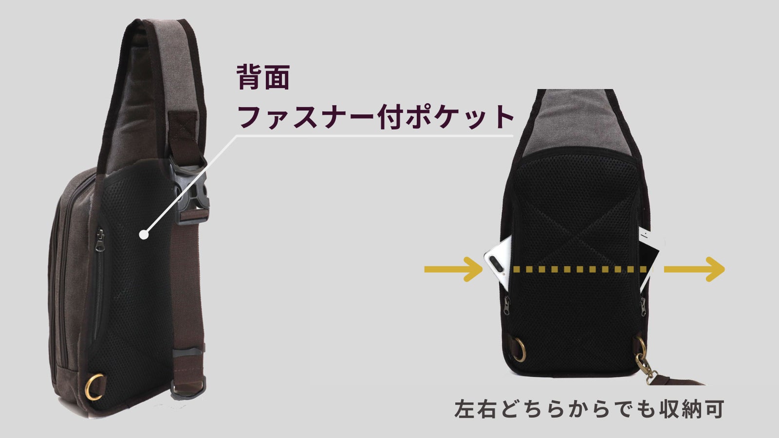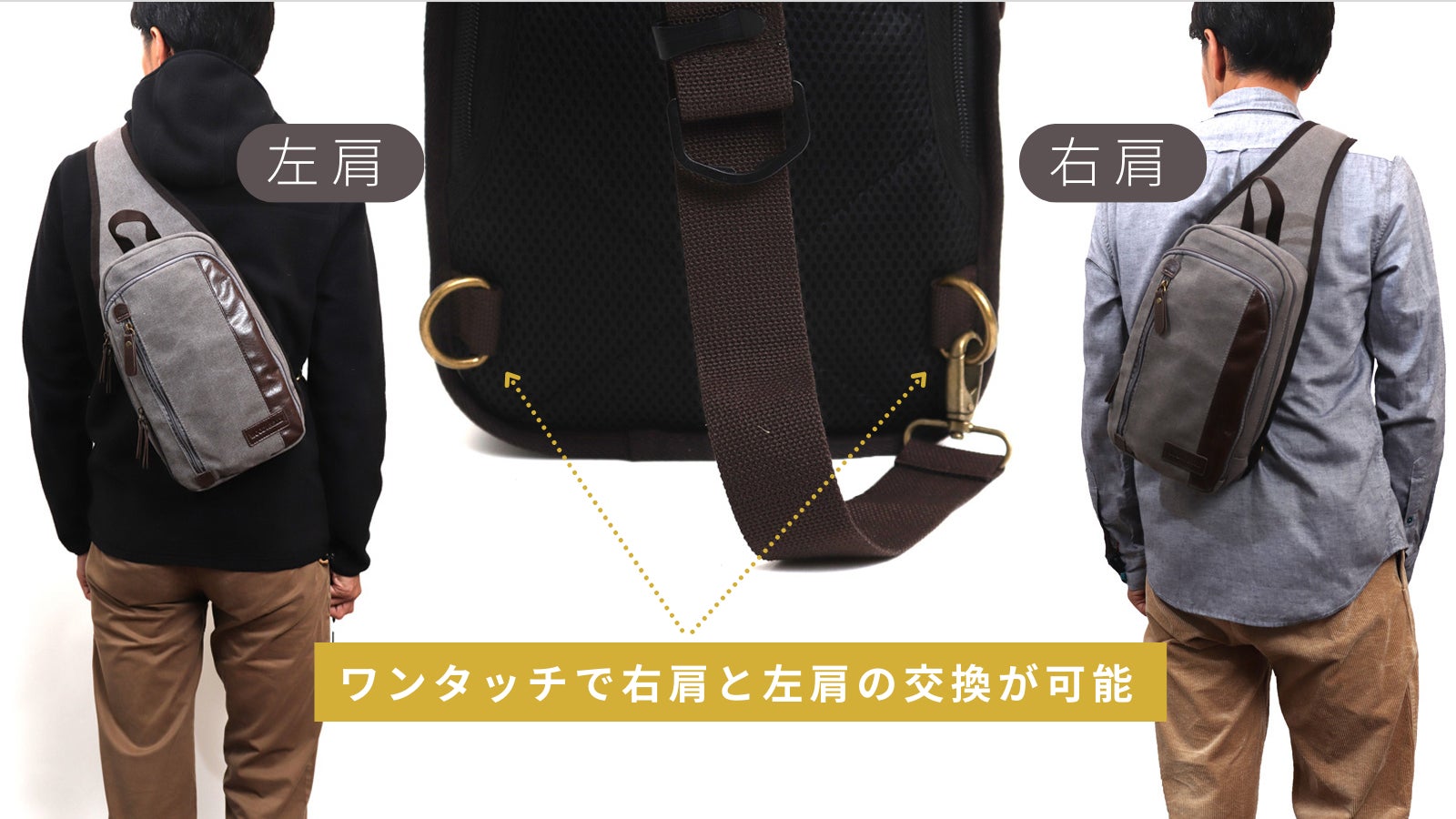 「片方の肩だけ負担がかかりそう」を解決。左右どちらの肩にも対応できるので、肩の負担を軽くできます。