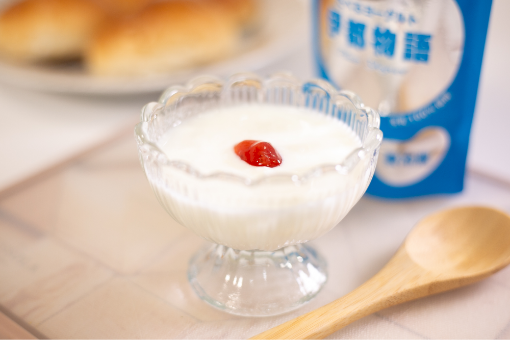 たべるヨーグルト(プレーン)は新鮮な牛乳と乳酸菌のみで作っており酸味が少なく、生乳の美味しさをそのまま味わえます。味わいは、プレーンと加糖の2タイプ。食べるヨーグルトといえば固形をイメージされる方がほとんどですが、『たべるヨーグルト』は飲むヨーグルトよりもクリーミーで弾力のある舌ざわりで、プレーンはジャムやサラダなどにもアレンジ自在、加糖はおやつ感覚でおいしく食べられる と料理好きな方や子育て中のお母様方を中心に注目を集めています。