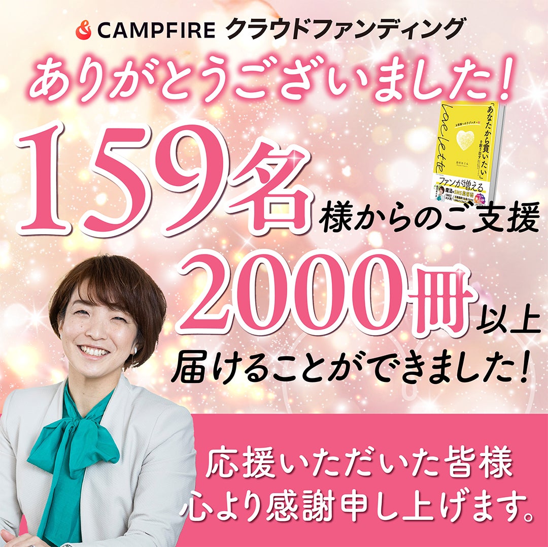 【34%割引になる早割!】40席・30席満席!→ちょっとだけ増席しました2月1日に書籍を発売して①三省堂書店池袋本店 週間ビジネス書ランキング1位②三省堂書店 札幌店1位③ブックファースト 新宿本店 ビジネス書ランキング1位④三省堂書店 名古屋 1位⑤有隣堂横浜店で3位そして新たに⑥名古屋 星野書店 1位をいただくことができました!本当に感謝感激です^^出版を記念して講演会も東京・大阪・名古屋と終えラスト3都市になりました^^そしてありがたいことに福岡出版記念講演会なんと早割終了までに30席満席になりました! 広島出版記念講演会も40席満席になりました!!うわ〜〜〜〜〜♡びっくりマンボウです♡ 本当にありがとうございます♡「後で申し込もうと思っていたら満席になってしまいました」「まだ余裕で入れると思っていました!」とご連絡をいただきました^^そこで少しですが、増席をしました!書籍付きで超お得←自分で言っちゃう♡福岡・広島で講演会をするのは次回はいつかワカリマセン(泣)ぜひご縁ある方々にお会いできるのを楽しみにしています!【出版記念講演会】5月13日(月)福岡 【満席→増席しました】https://resast.jp/events/9212475月24日(金)広島 【満席→増席しました】https://system.faymermail.com/forms/215687月6日(土)仙台 待ってます〜♡https://resast.jp/events/924442ぜひチェックしていただけると嬉しいです!クラファンで応援していただき本当にありがとうございました!あの時の応援のおかげで全国をこうして回ることができています^^最大級の感謝を込めて