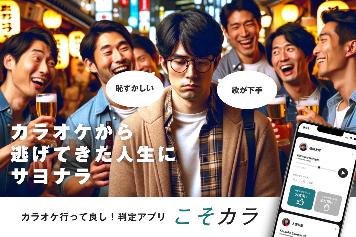 「こそカラ」は、匿名で歌声を投稿して、見知らぬ人から「カラオケに行って大丈夫」「まだ早い!」を教えてもらえるプラットフォームです。