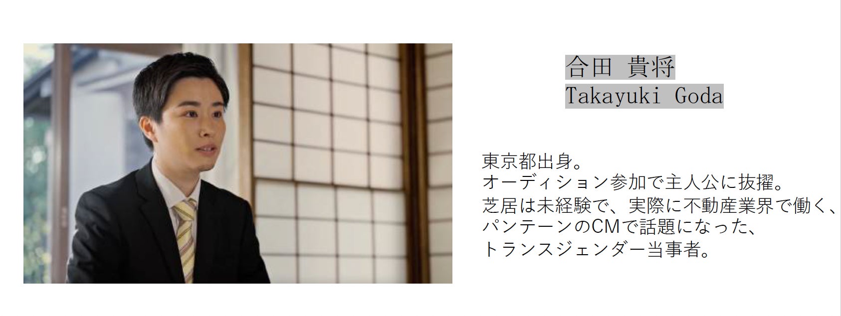 この後、ご紹介する主人公の合田さんと演技レッスンをする中でも、様々なディスカッションがありました。当事者として作品の中で生きて、シーンによっては、「合田さんそのままでいいです」とお伝えして、演技のリハーサルをやらなかったシーンもあります。