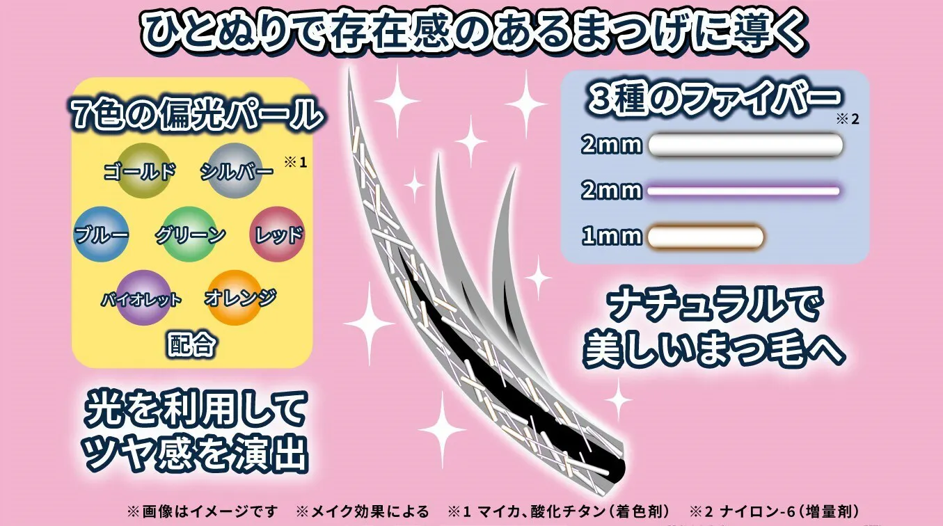 7色の偏光パールがまつ毛の存在感をサポート。